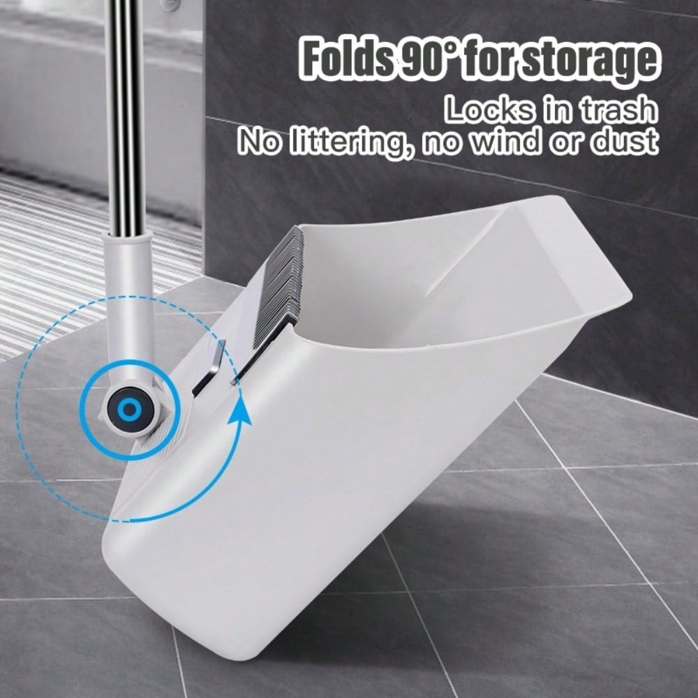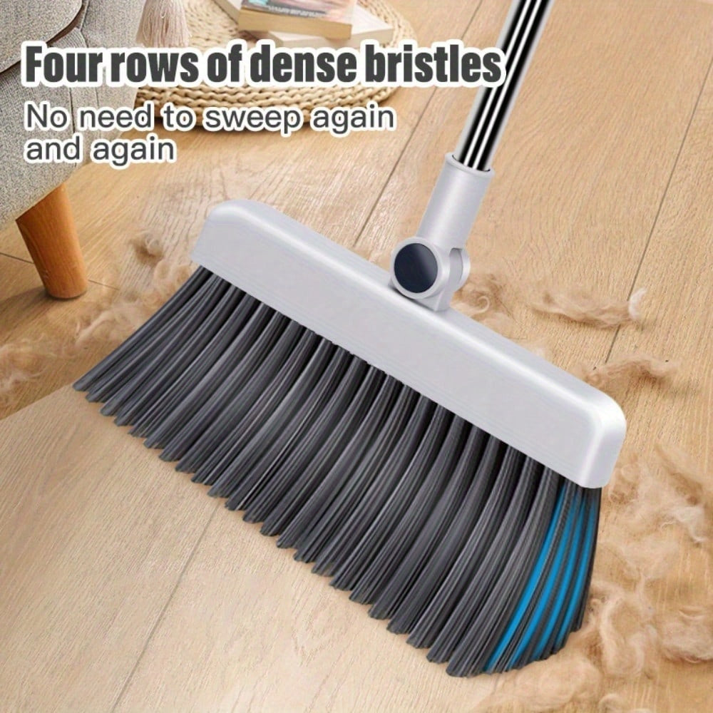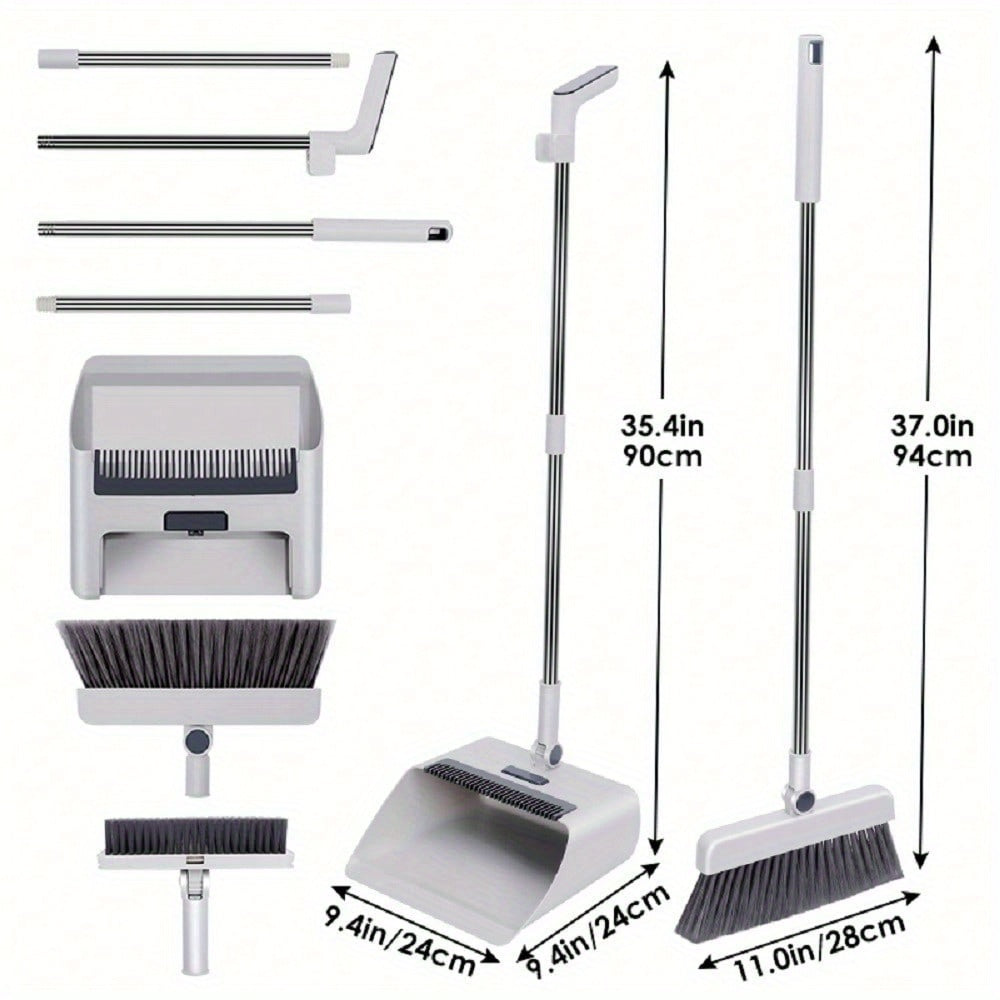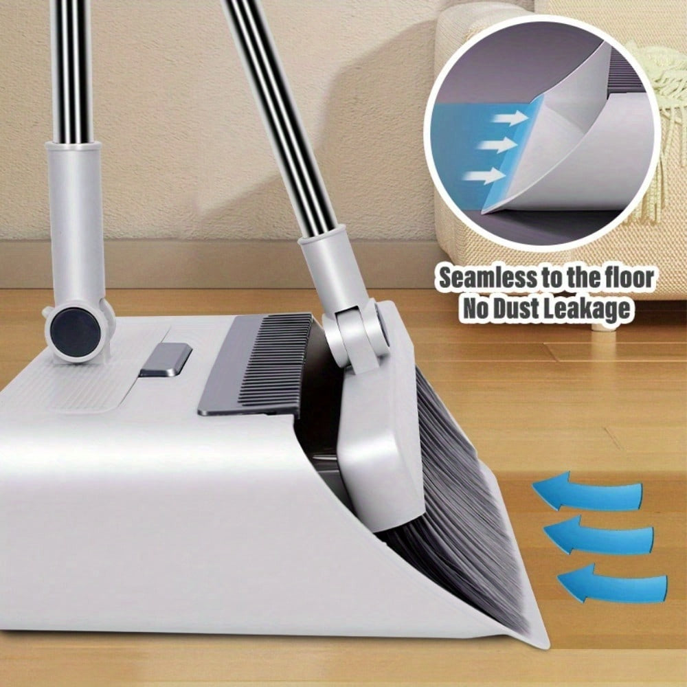 Adjustable Handle Upright Standing Broom and Dustpan Set - Heavy-Duty Long Handle with Ergonomic Grip,
