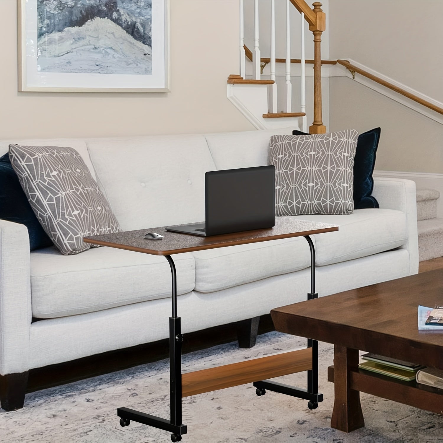 Adjustable Height Rolling Computer Desk with Wheels - 80.01cm x 39.24cm Compact Mobile Workstation