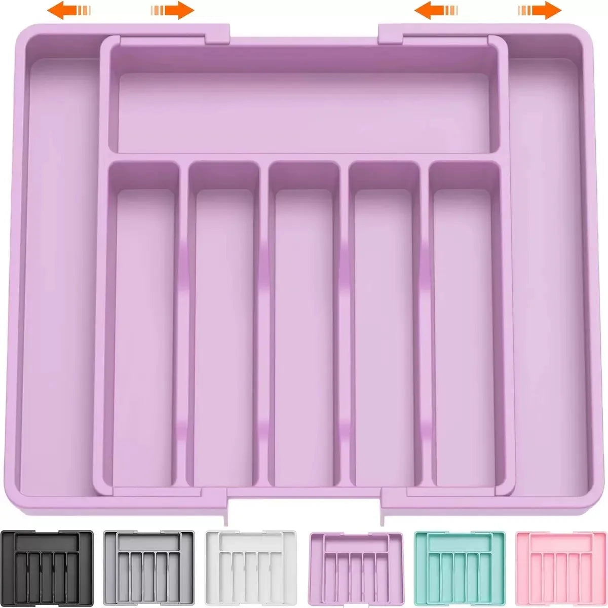 Adjustable Kitchen Storage Organizer Tray – Plastic Multifunctional Drawer Organizer for Kitchen Counter Utensils