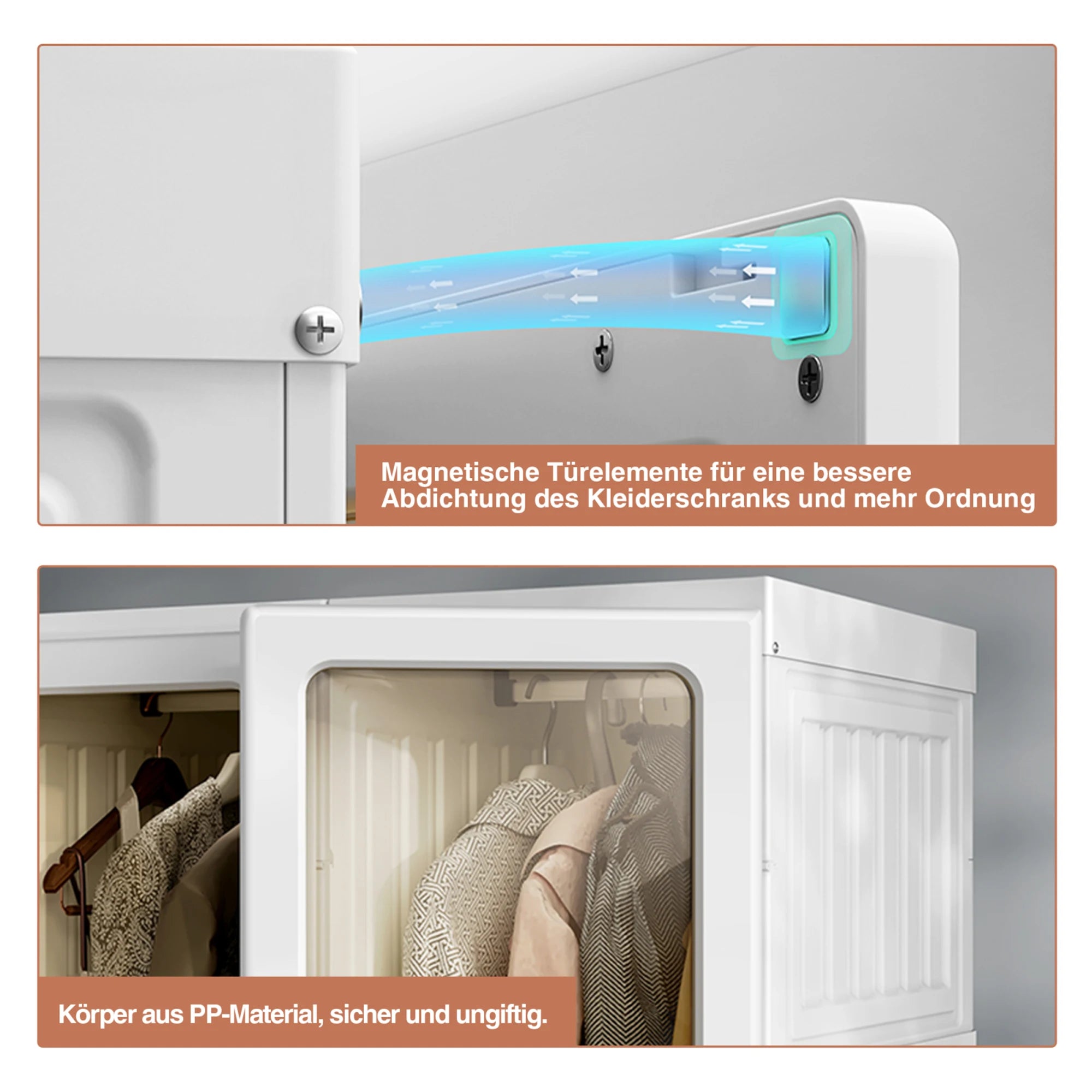Anajqaqia 69x50x170cm Foldable Closet Wardrobe with 6 Cubes and 1 Hanging Rail, Multi-Purpose Cabinet with Magnetic Doors, PP