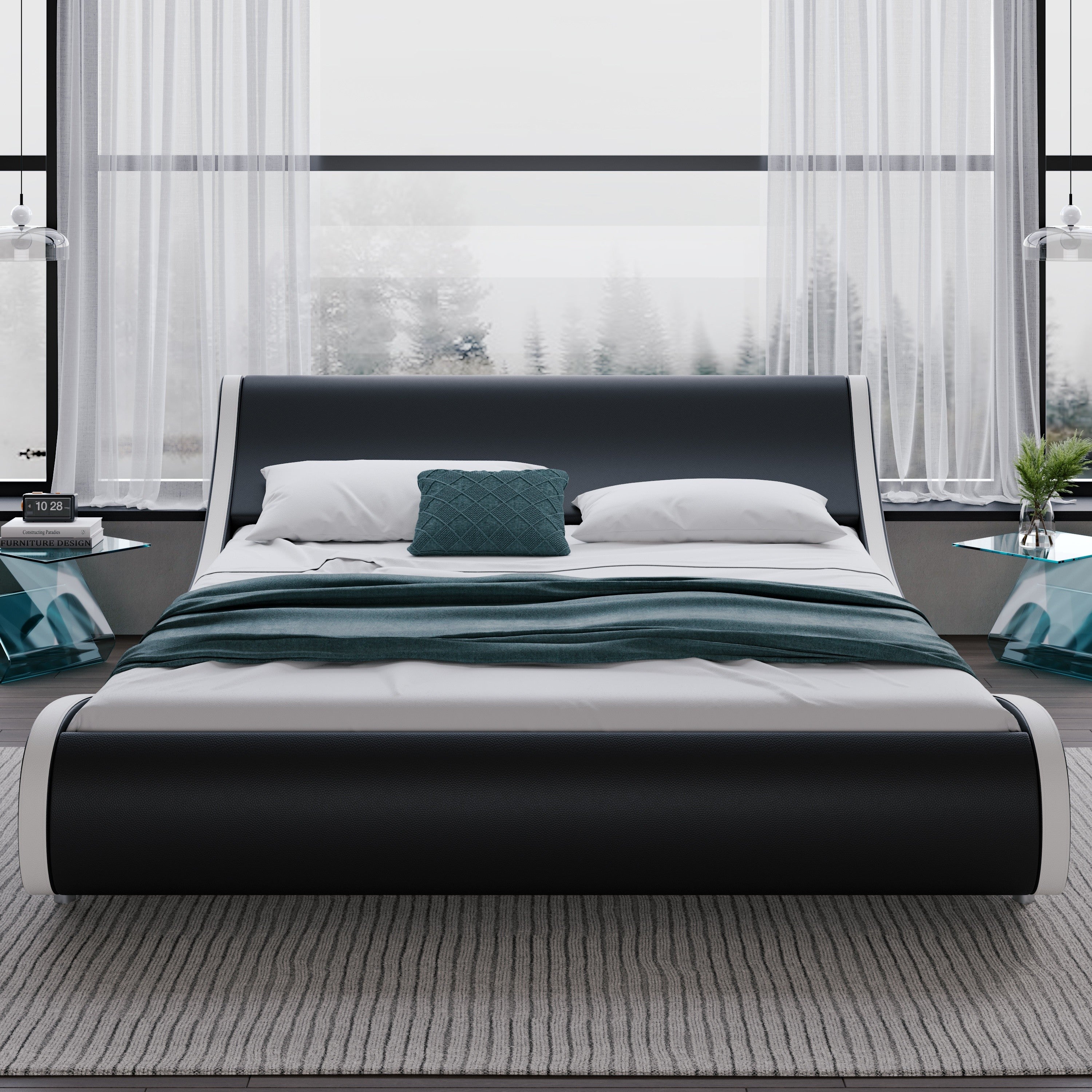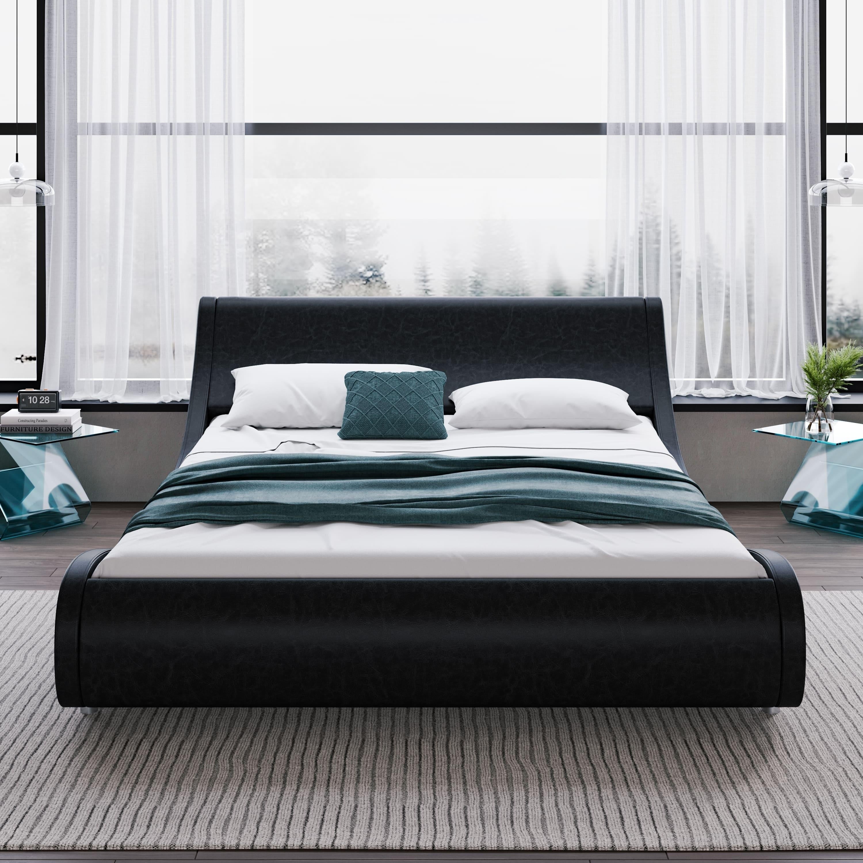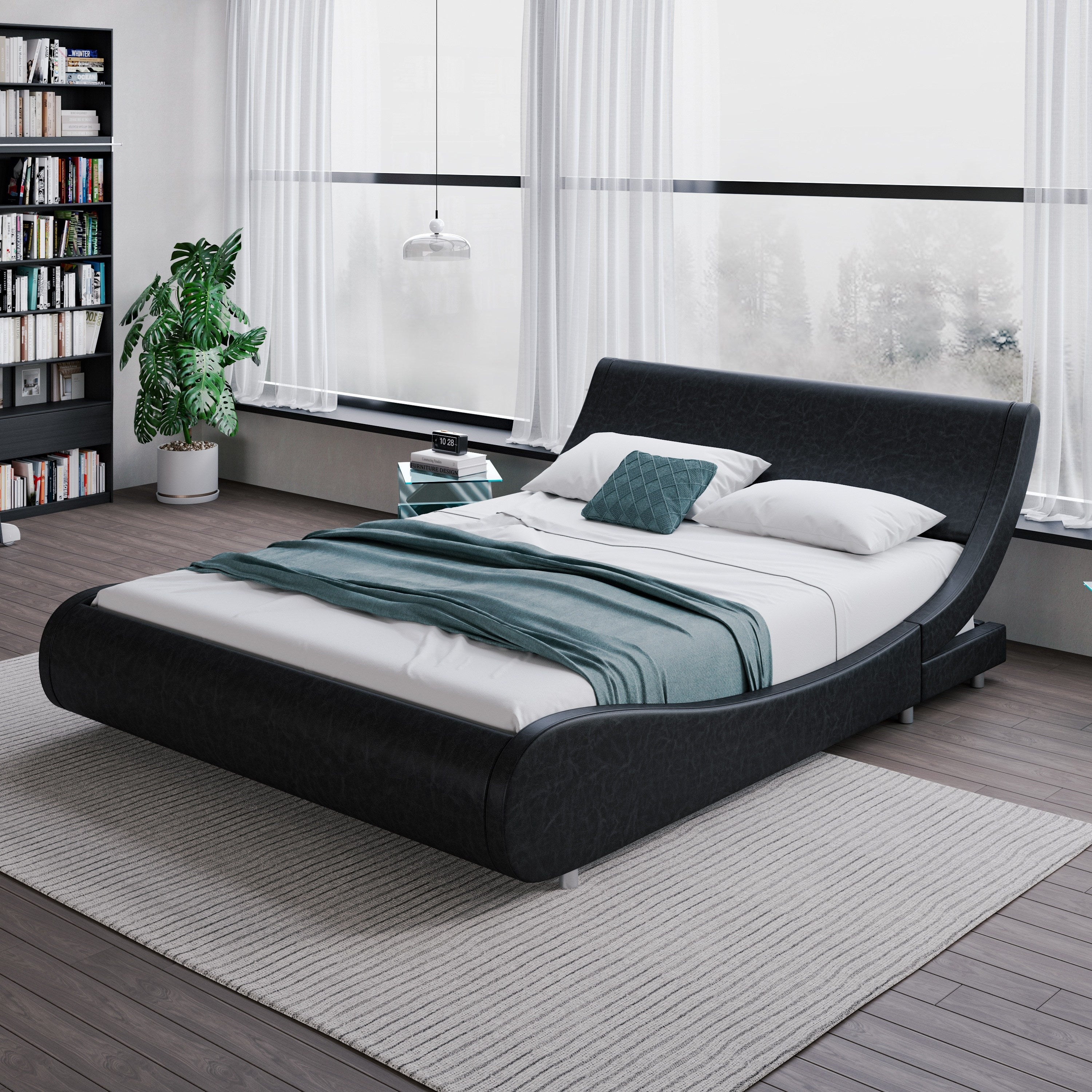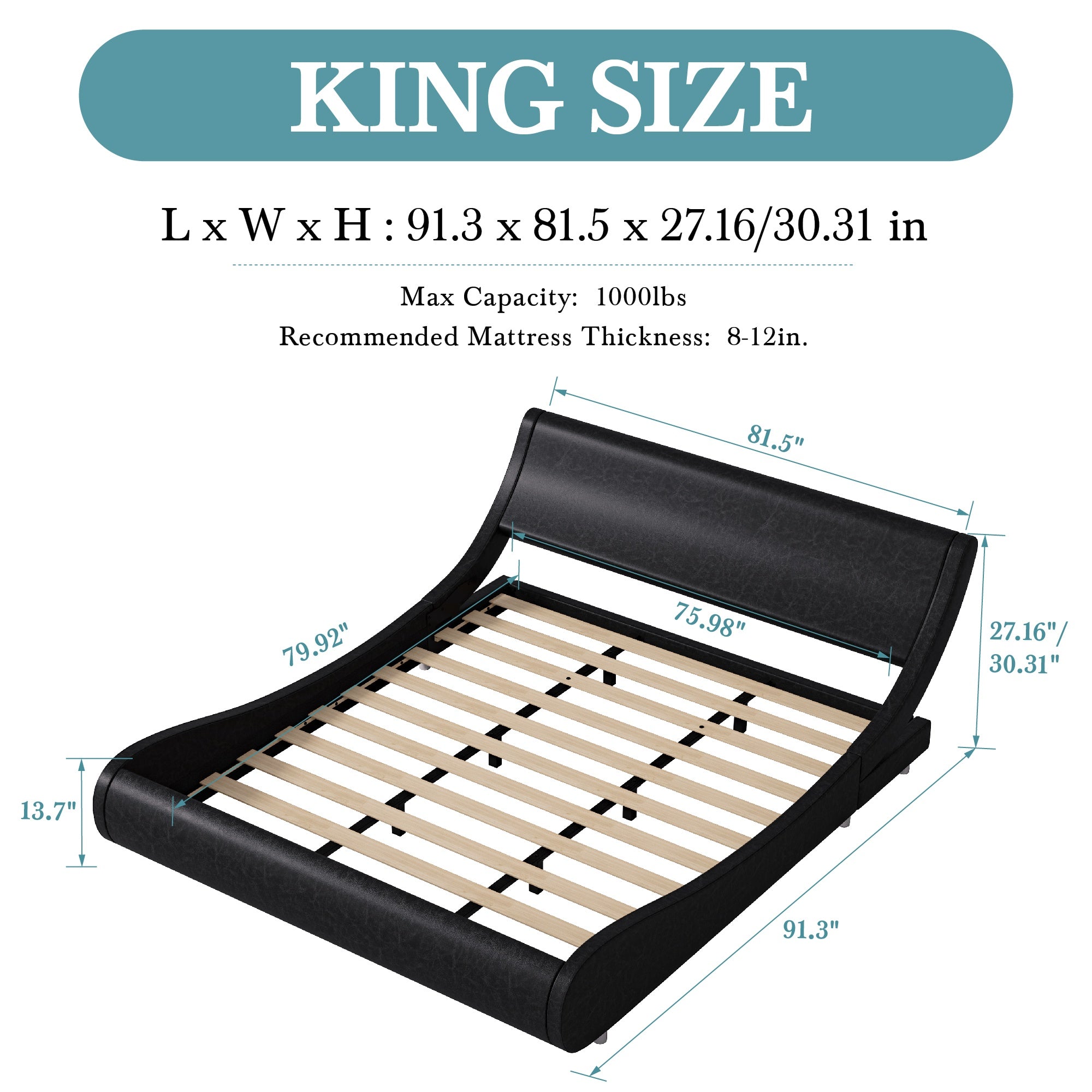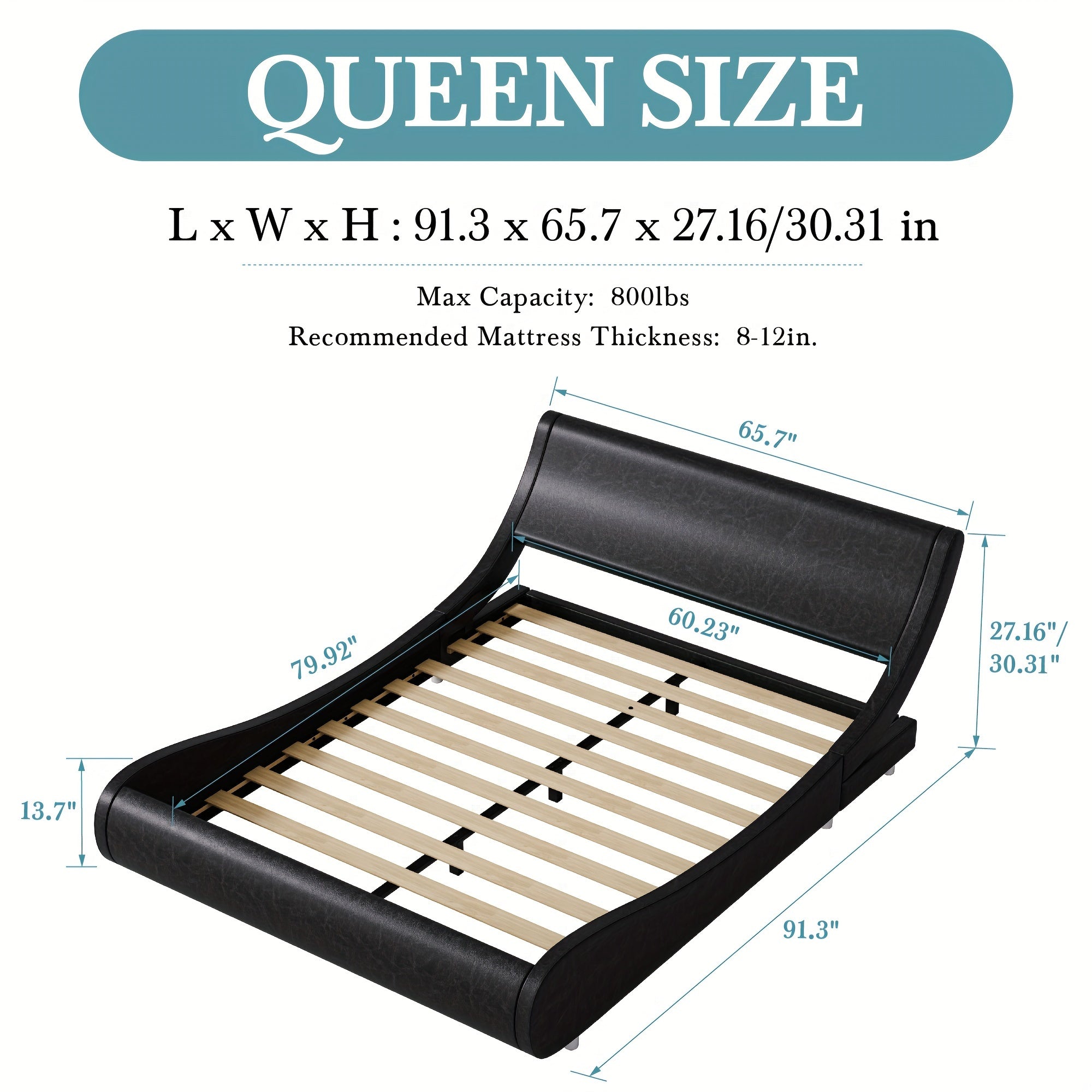 Bed Frame with Adjustable Headboard - Deluxe Faux Leather Upholstered Bed, Solid Wood