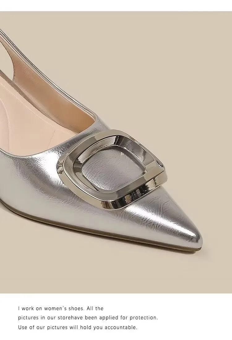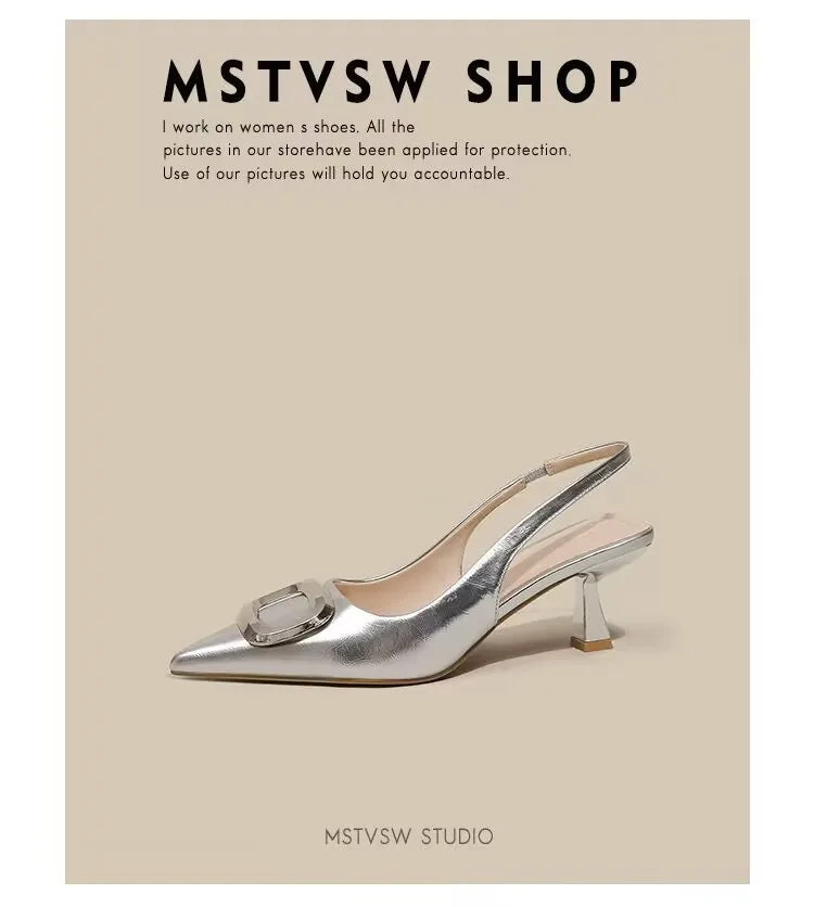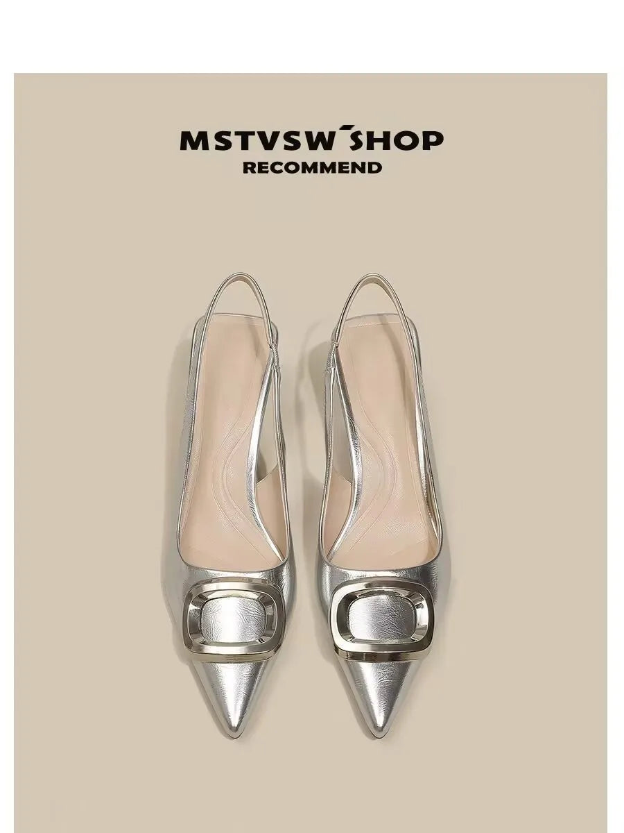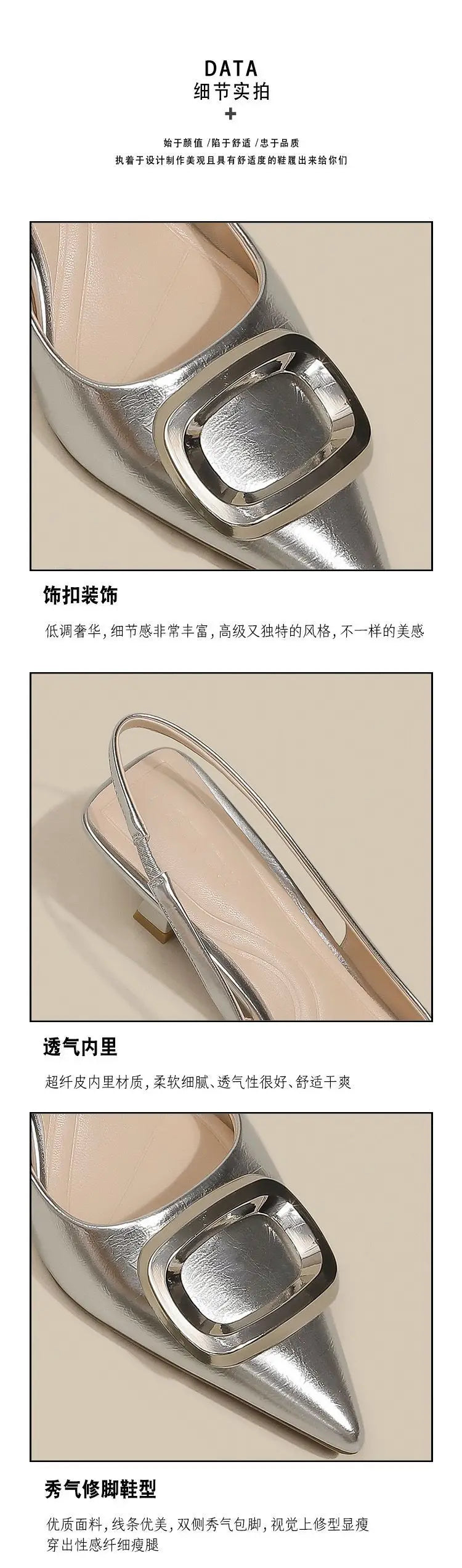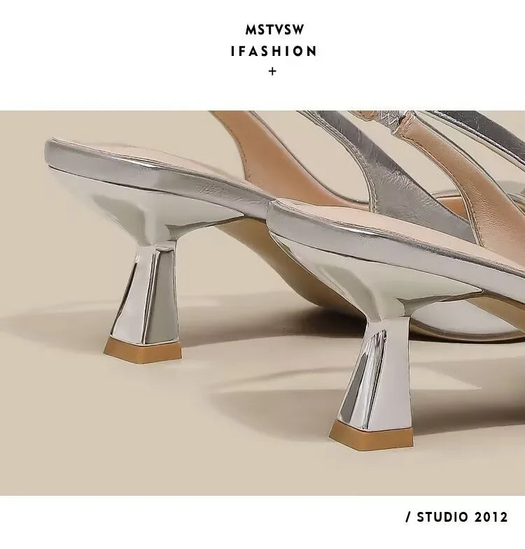 Brand Woman Slingback Shoes Fashion 2024 Spring New Ladies High Heels Elegant Med Heel Pointed Toe Slip on Sandal Mules