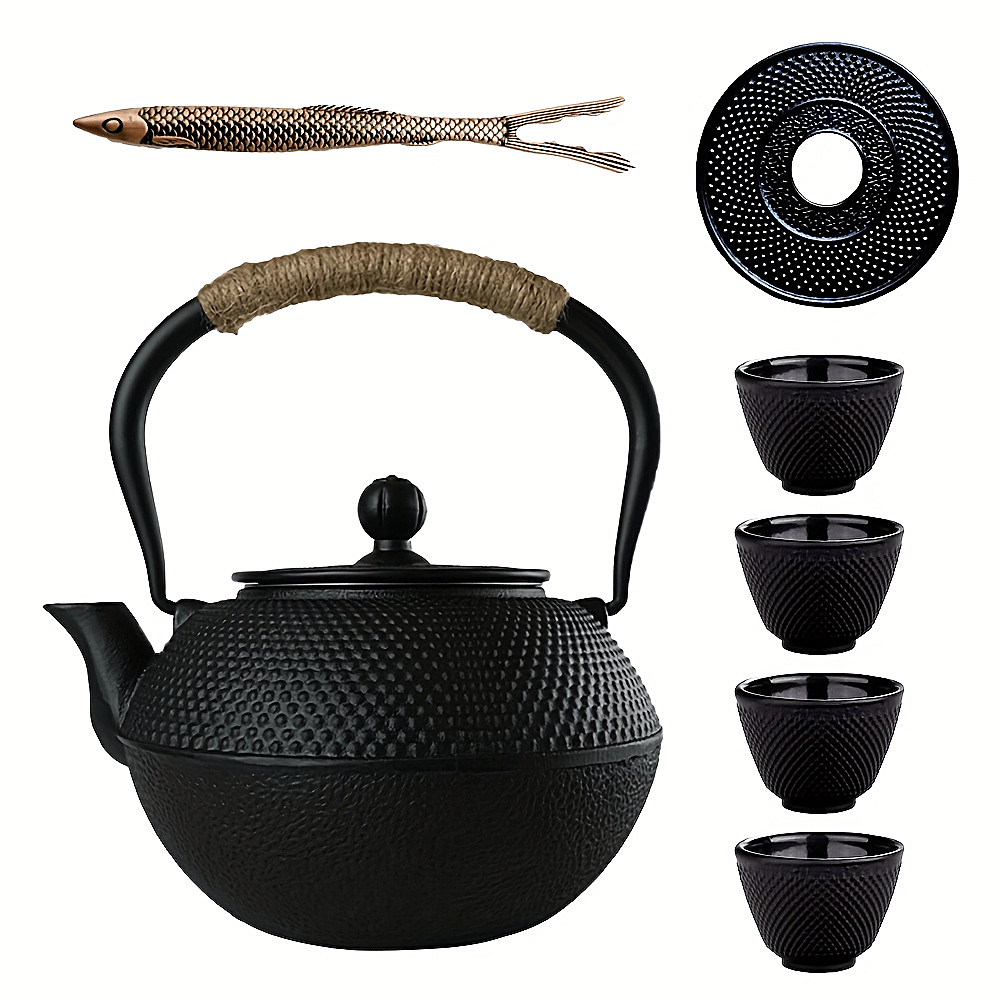 Cast Iron Teapot with Removable Stainless Steel Infuser - Classic Elegant Design,