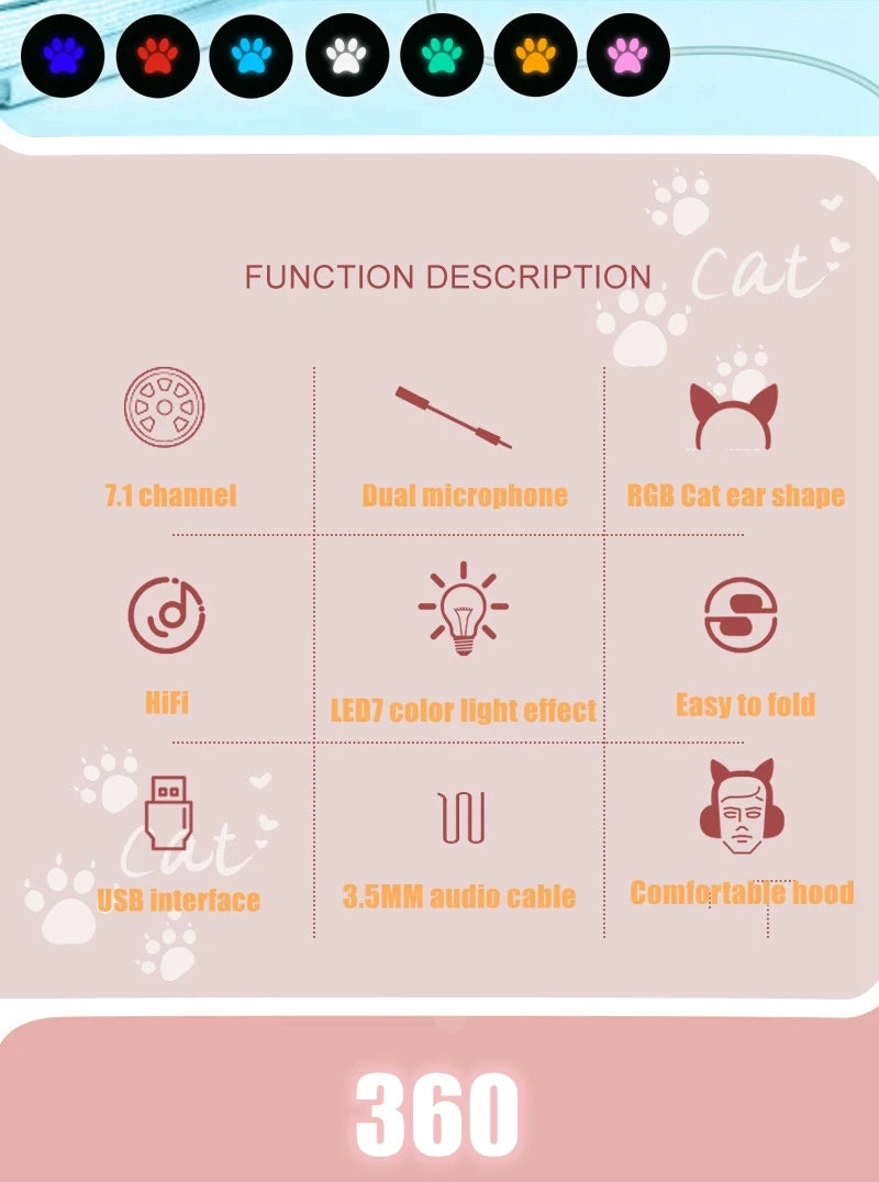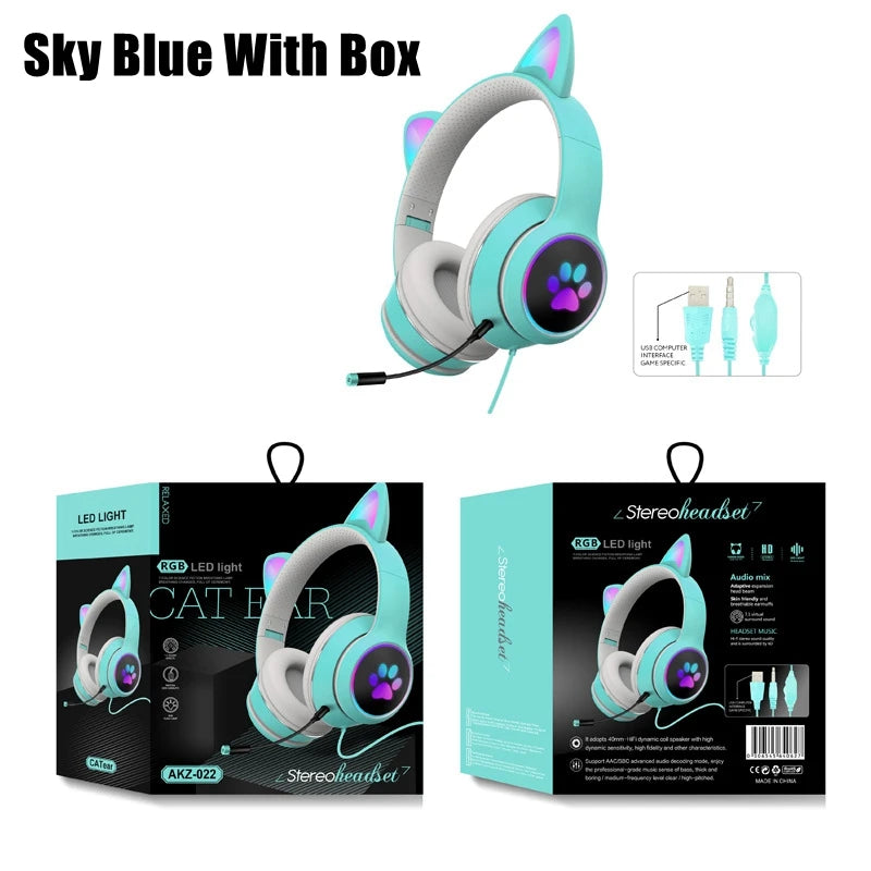 Cat Ear Gamer Headset Girl Cute Headset Double Noise-Cancelling Headphone With Microphone RGB Light Virtual 7.1