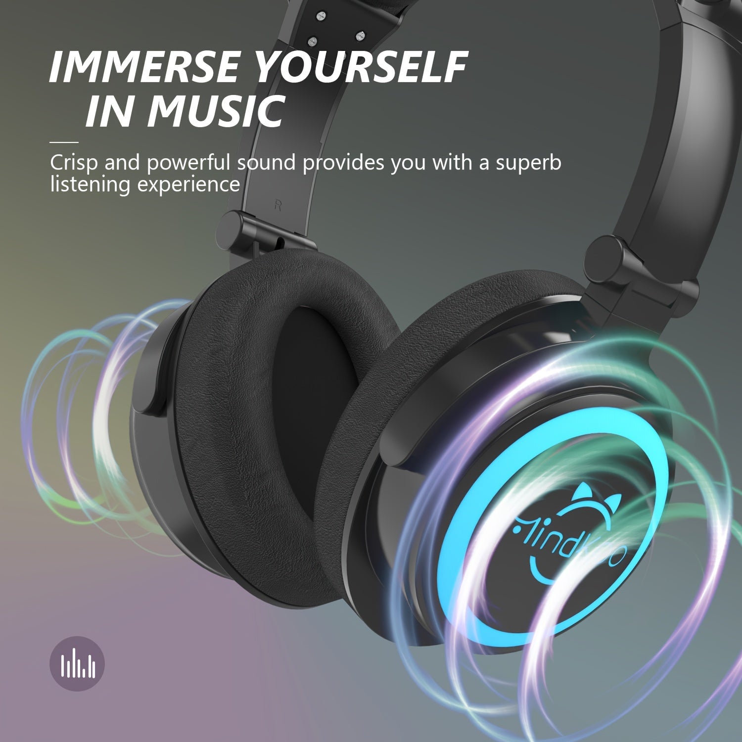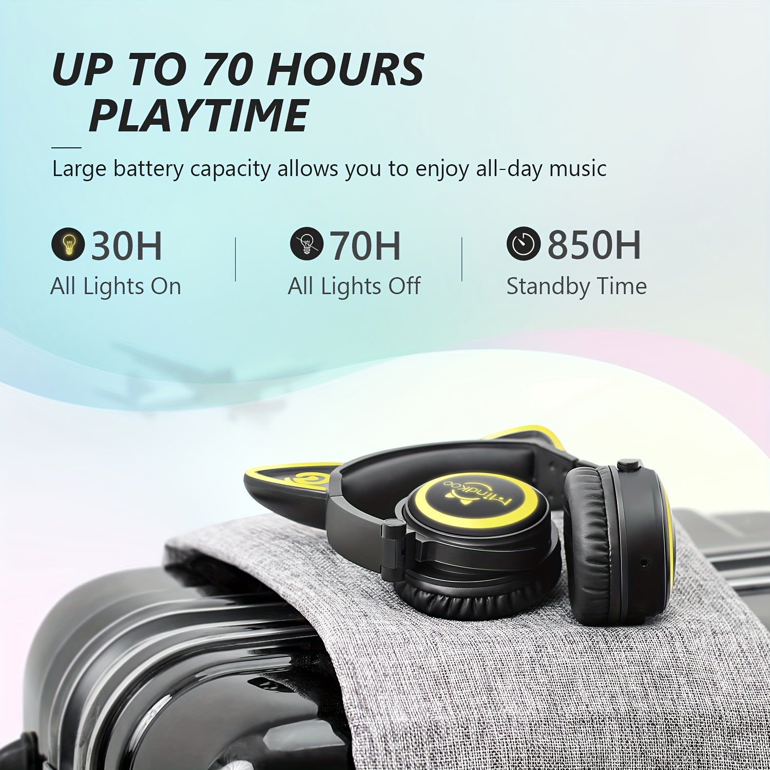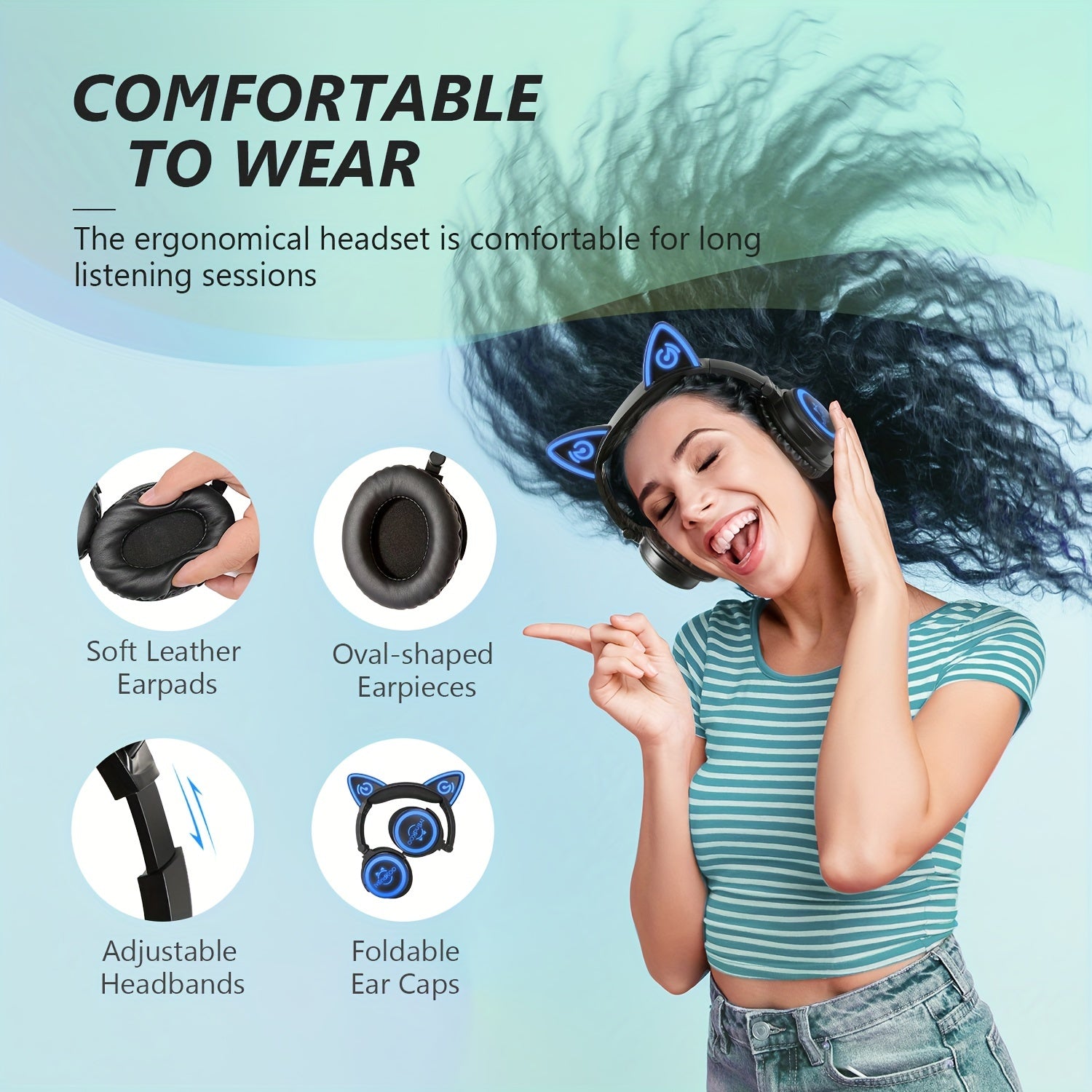 Cat Ear Wireless Wireless Headphones with LED Light Up Cat Ear, 7-Color RGB, Compatible