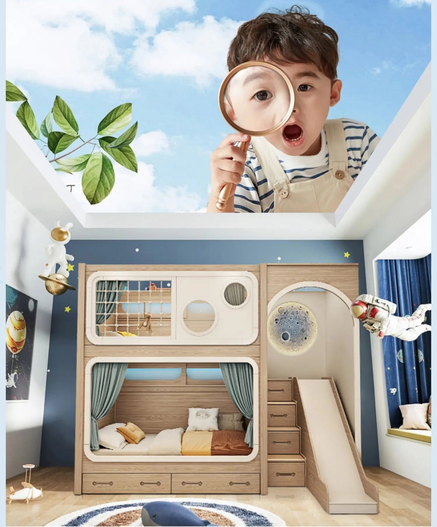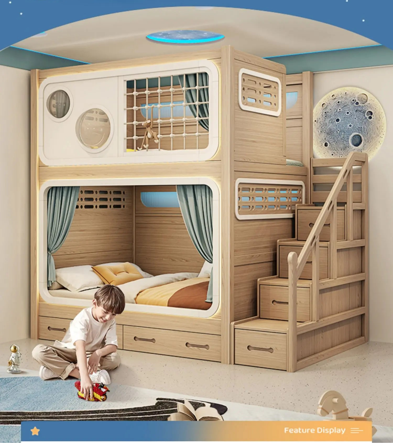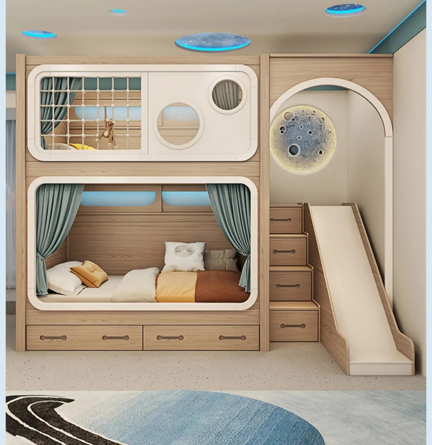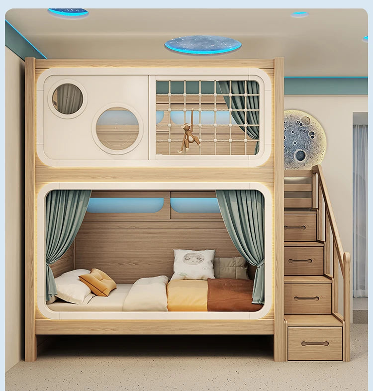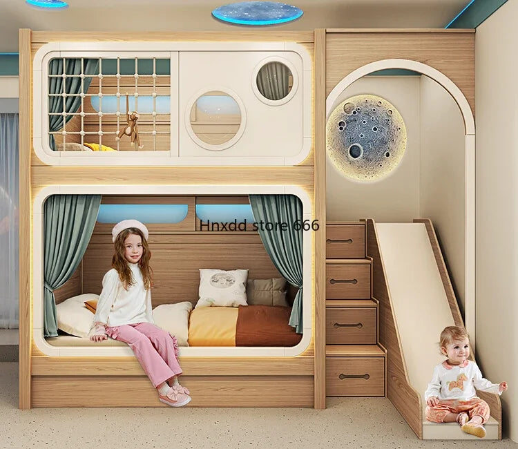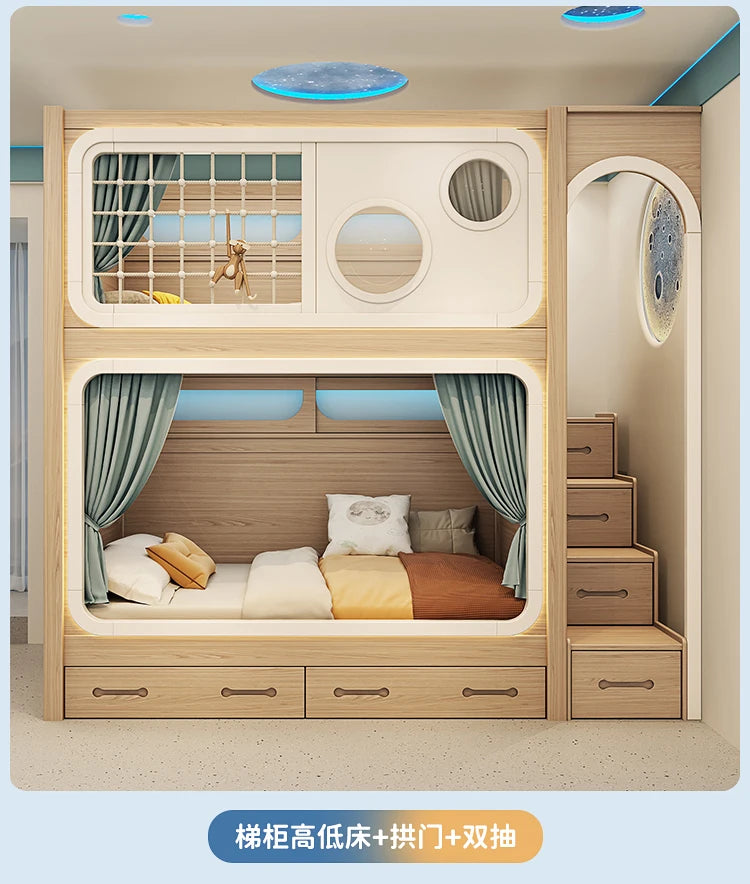 Children's upper and lower bunk double-layer high and low child-mother bed multi-functional combination