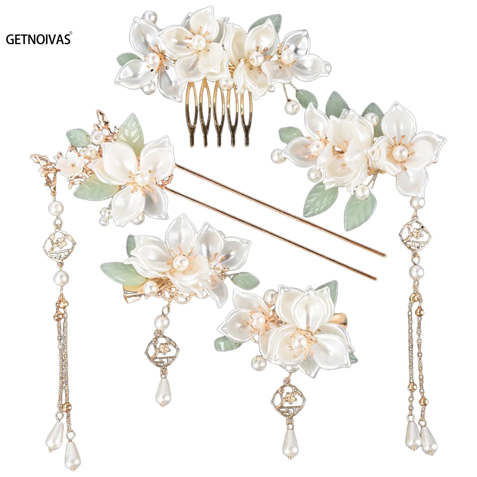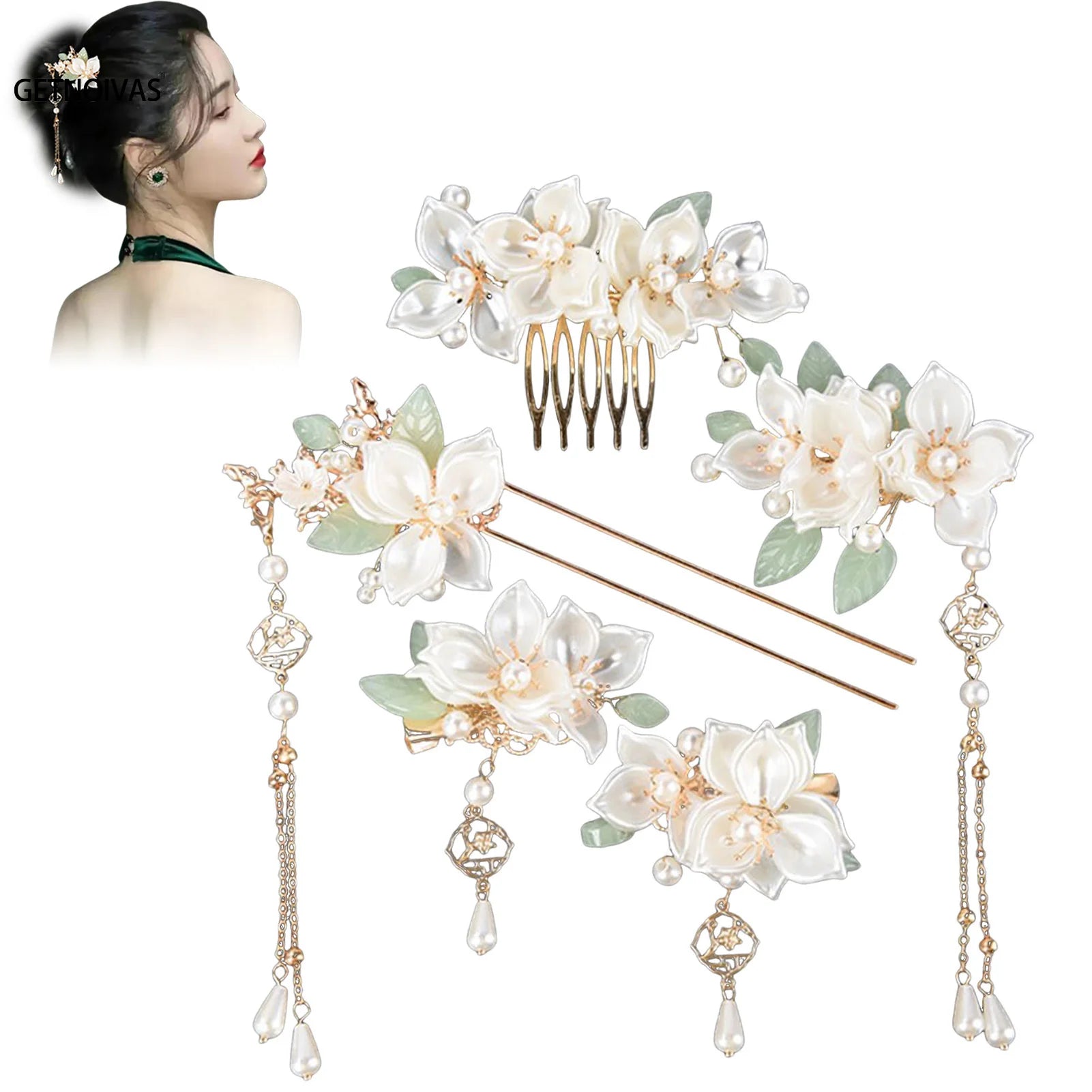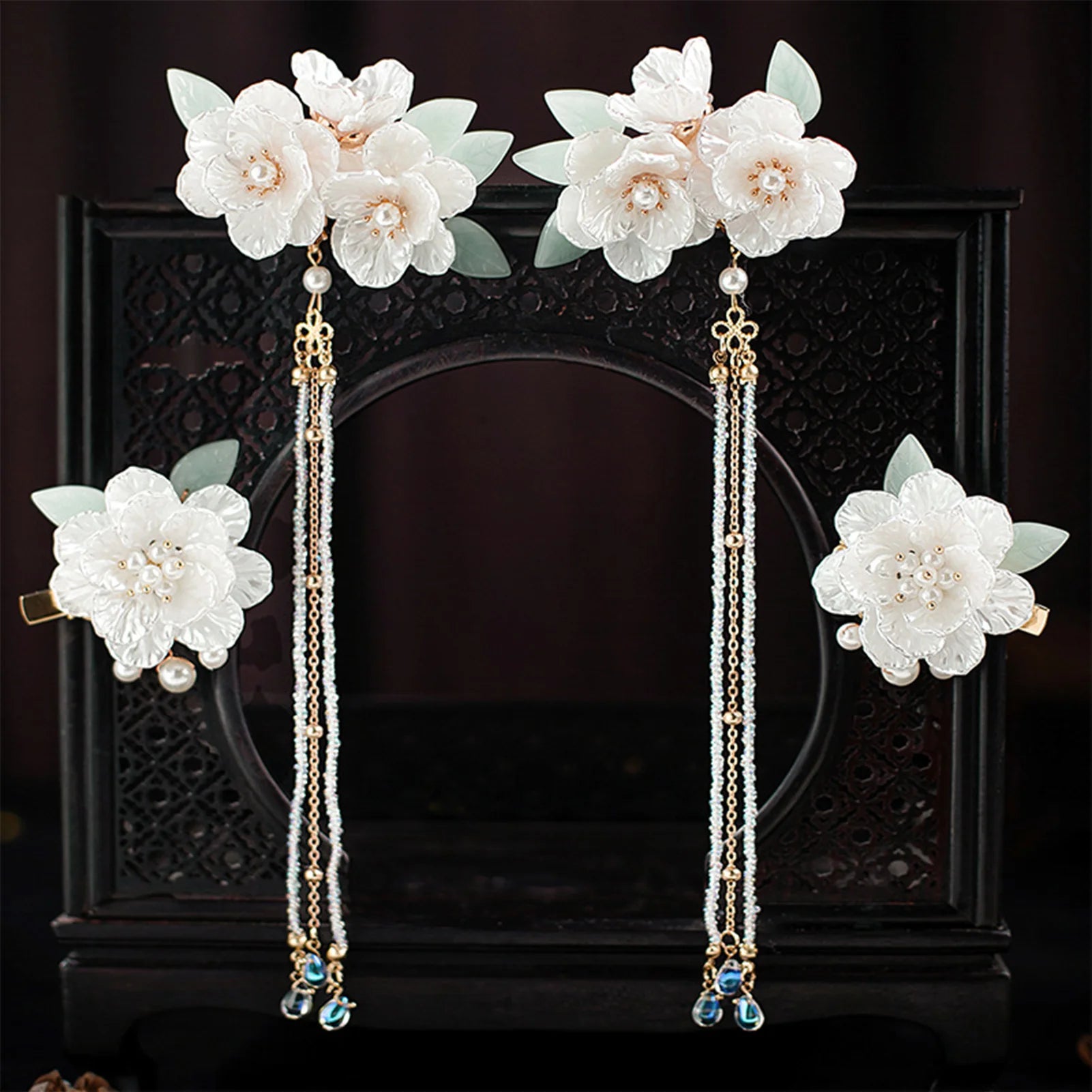 Chinese Hanfu Hair Accessories Set Long Tassel Vintage Hairpins Flower Handmade Hair Sticks For Women Traditional Retro Jewelry