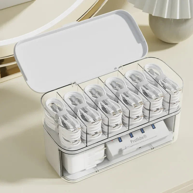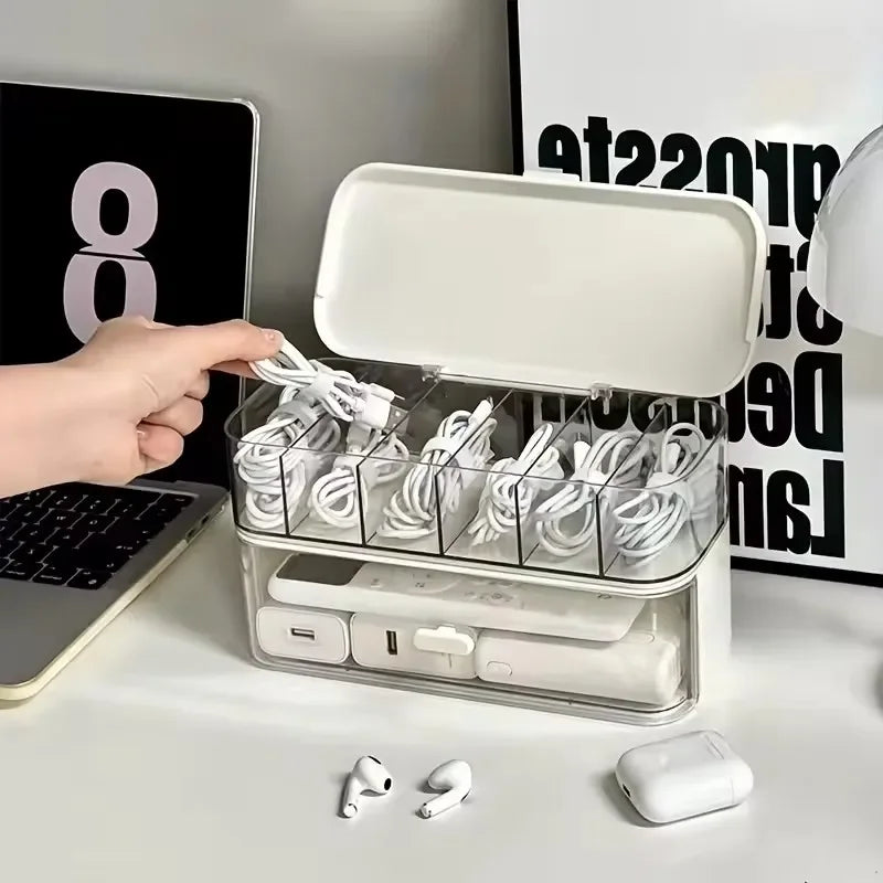 Compact Transparent Desktop Cable Organizer Box with Lid-No Power Needed Cord And Charger Storage Solution for Home Organization