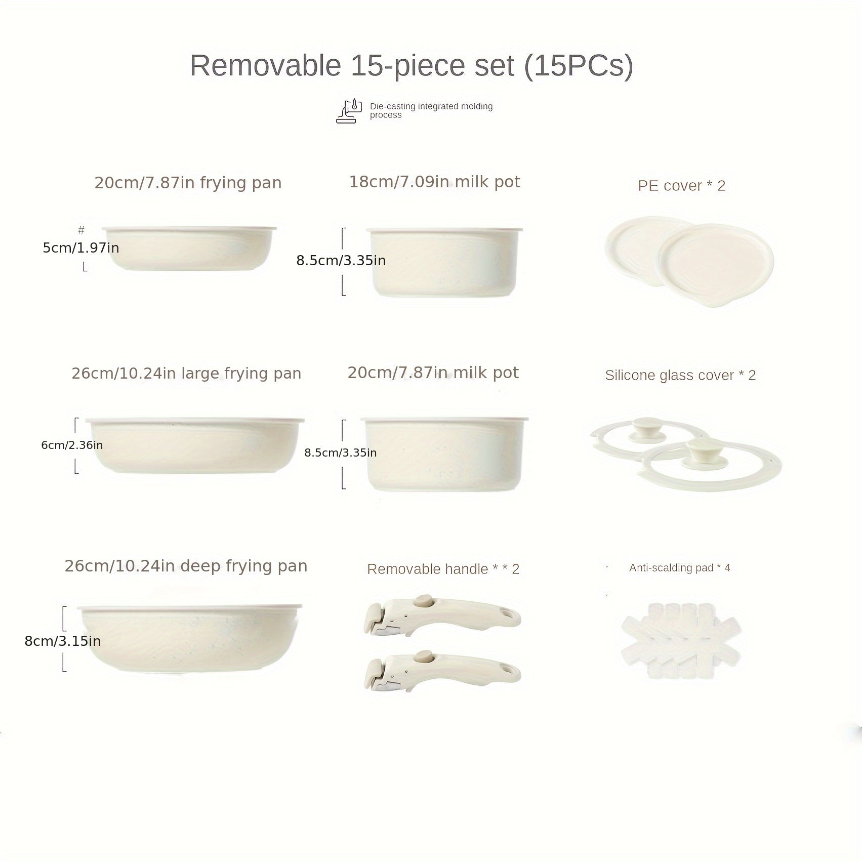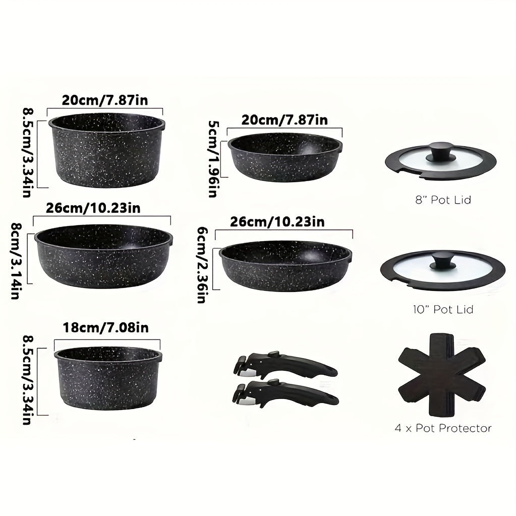 Cookware Set with Detachable Handle, Aluminum Alloy Kitchen Pots and Pans Set for Induction,