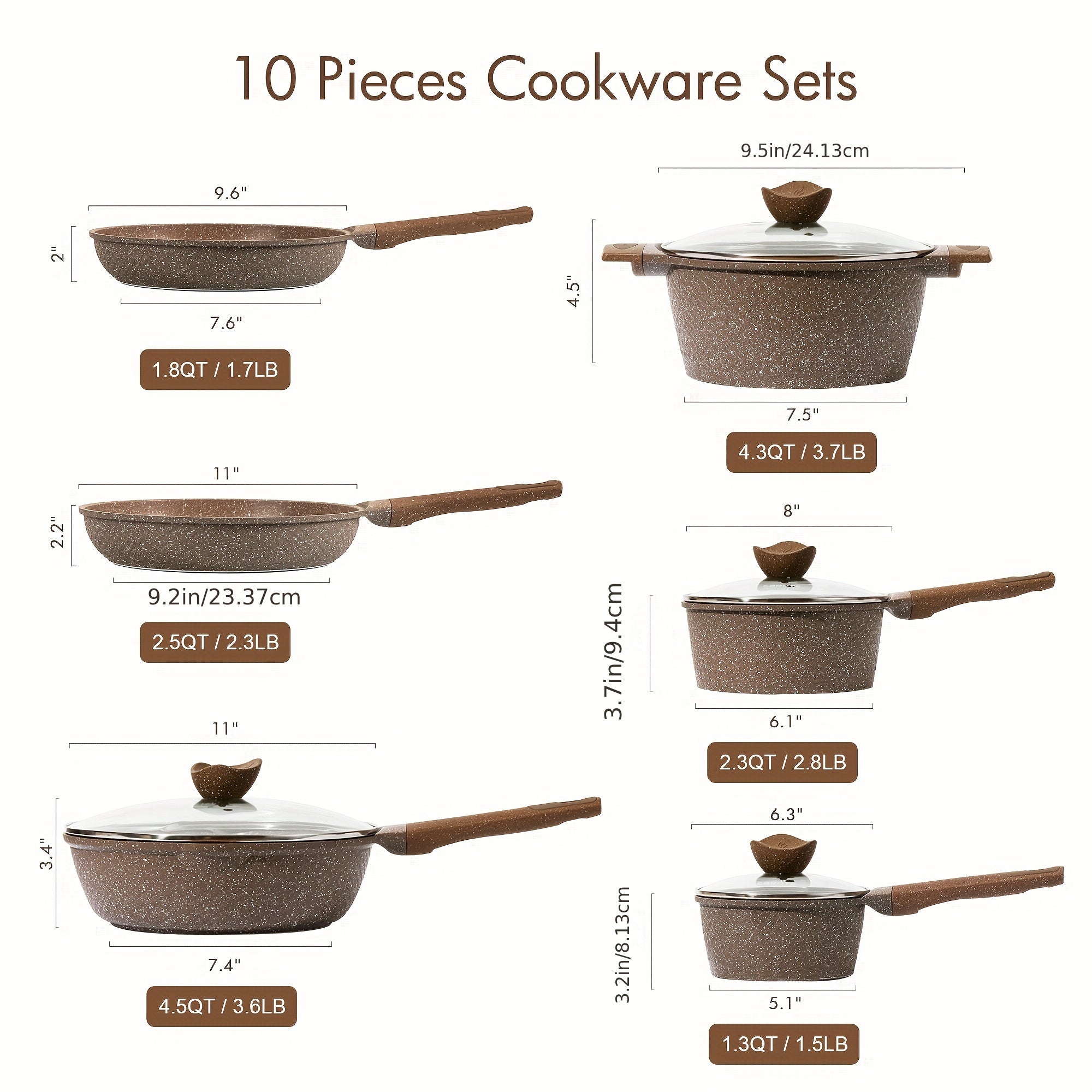 Cookware Sets, 10 Pcs Brown Granite Pots And Pans.