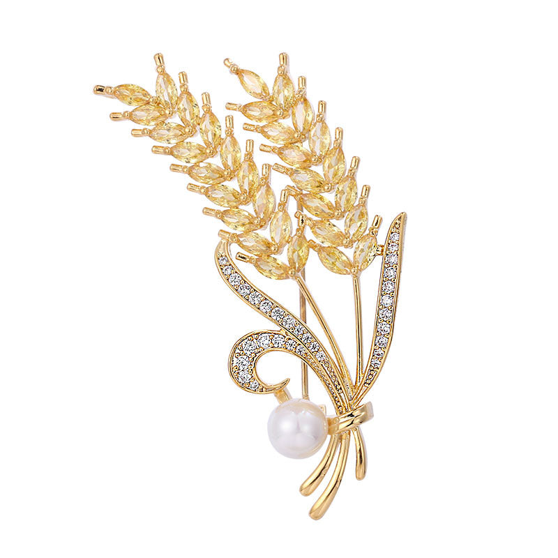 Copper White Gold White Zircon Wheat Brooch