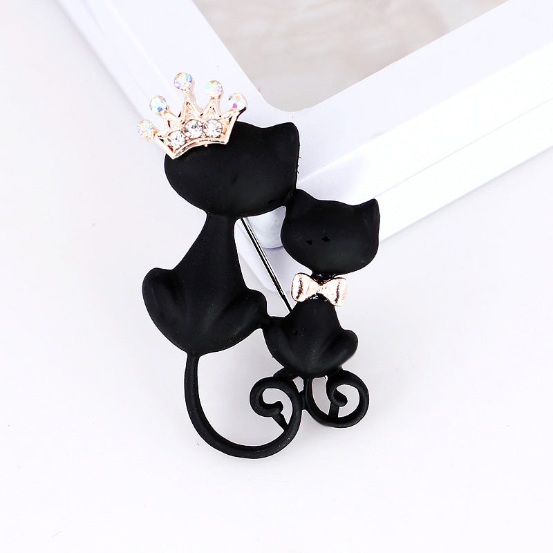 Crown size black cat brooch