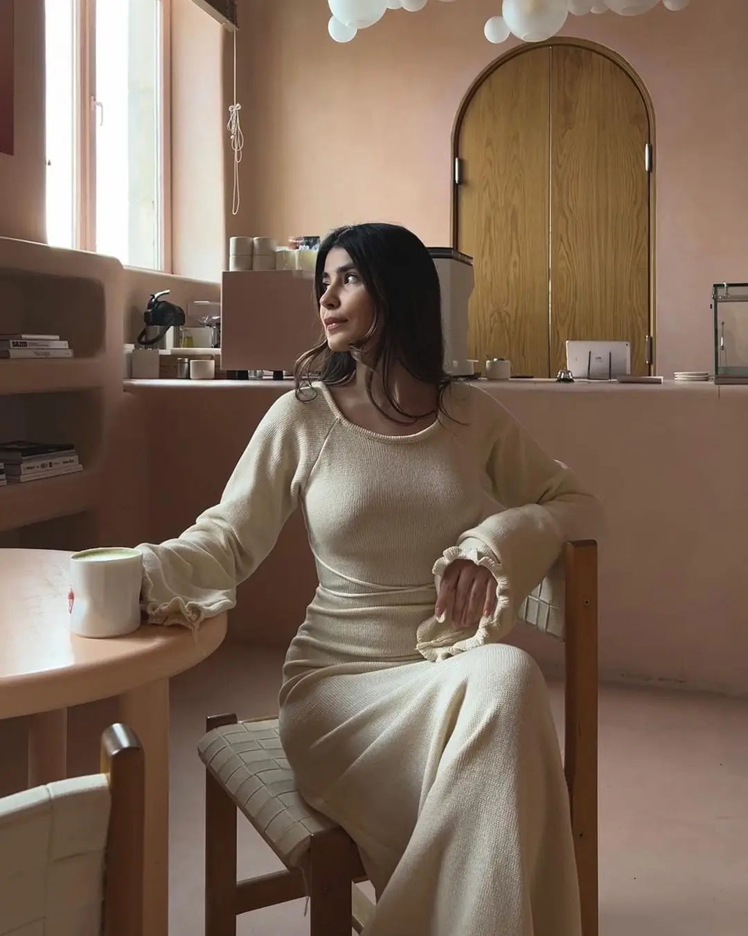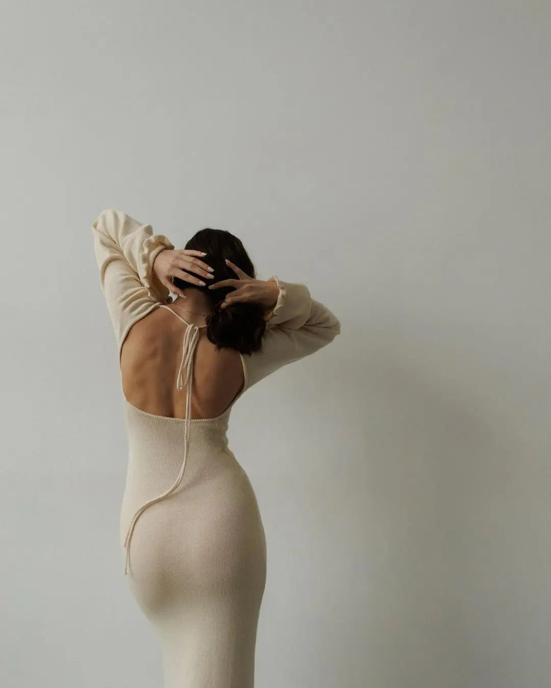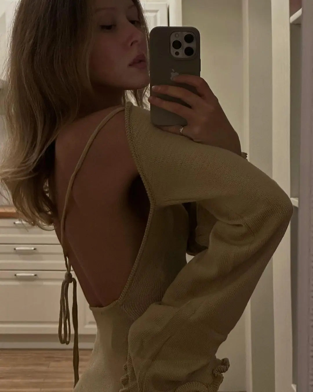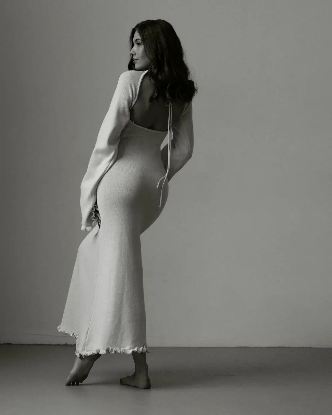 Cryptographic Elegant Knitted Sweater Maxi Dress Outfits for Women Flare Sleeve Sexy Backless Dresses Edible Tree Fungus Clothes