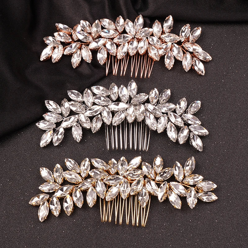Crystal Rhinestone Hair Combs Rose Gold Silver Color Headpiece For Bride Women Wedding Hair Accessories Head Jewelry