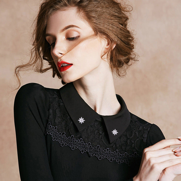 Crystal Small Brooch Collar Pin Gold-plated Micro Inlaid Zircon High-grade Anti-exposure Cap Ornament