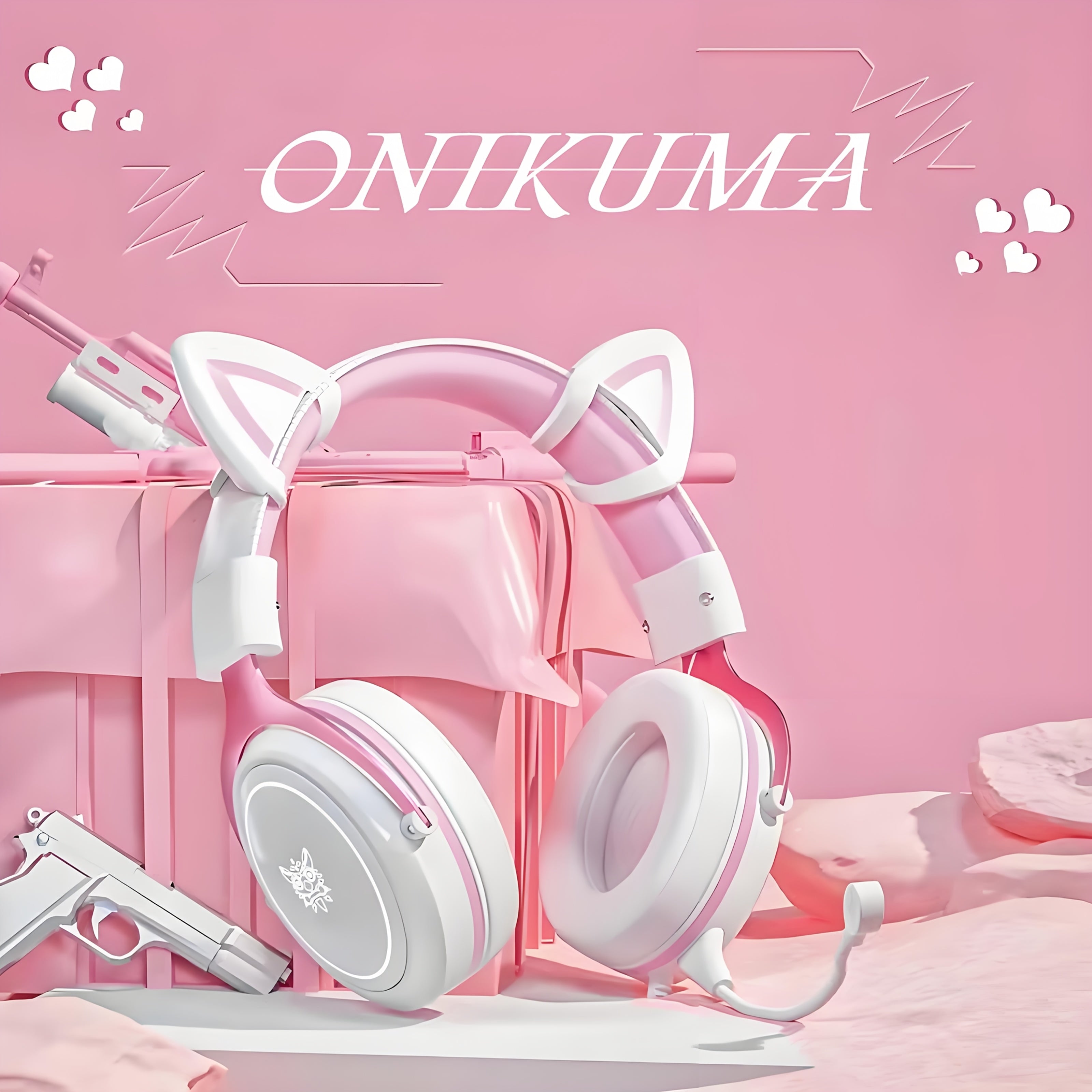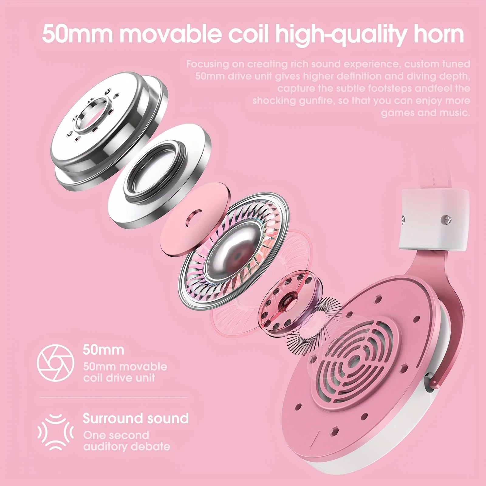 Cute Cat Ear Headphones - Wired Gaming Headset with HD Microphone, Detachable Cat Ears