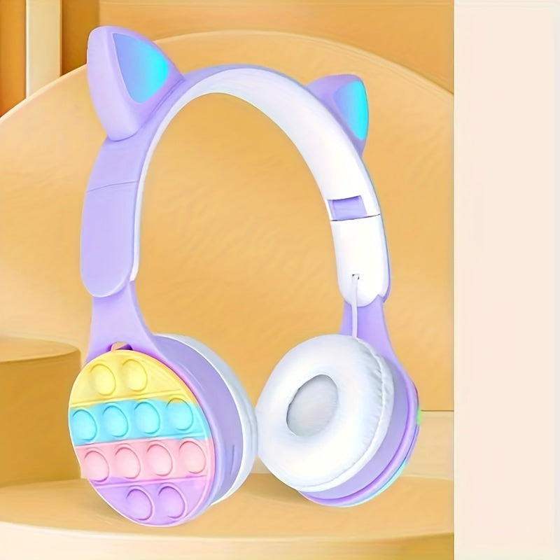 Cute Cat Ear Headphones - Wireless, Pink & White with Vibrant LED Lights, Heavy Bass,