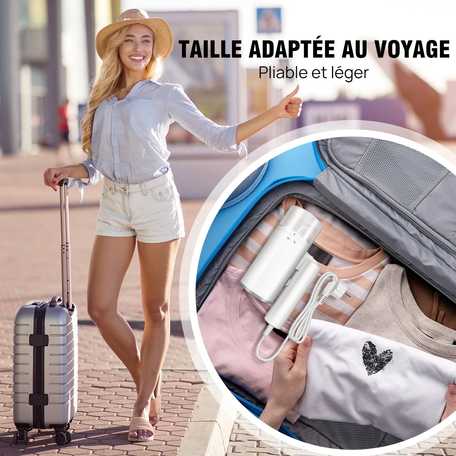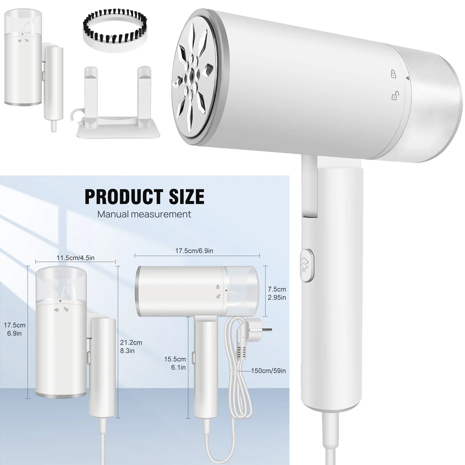 DayPlus 1200W Handheld Clothes Steamer Garment Portable Fabric Steam Heat Travel Iron Foldable Garment Steamer for Home&Travel