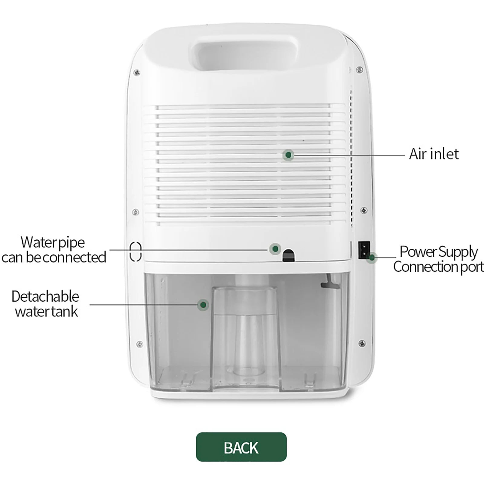 Dehumidifier with Drain Hose 2.5L Water Tank Moisture Absorber for Kitchen Bedroom Bathroom