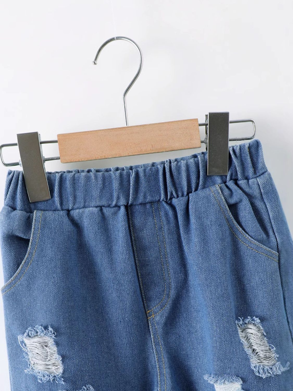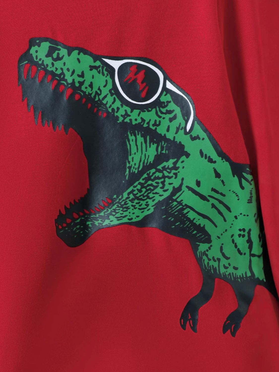 Dinosaur Round Neck Long Sleeve Top and Distressed Pants Set