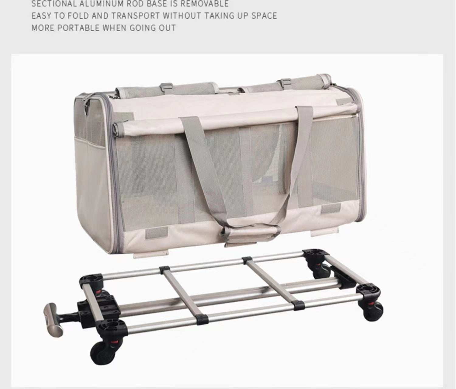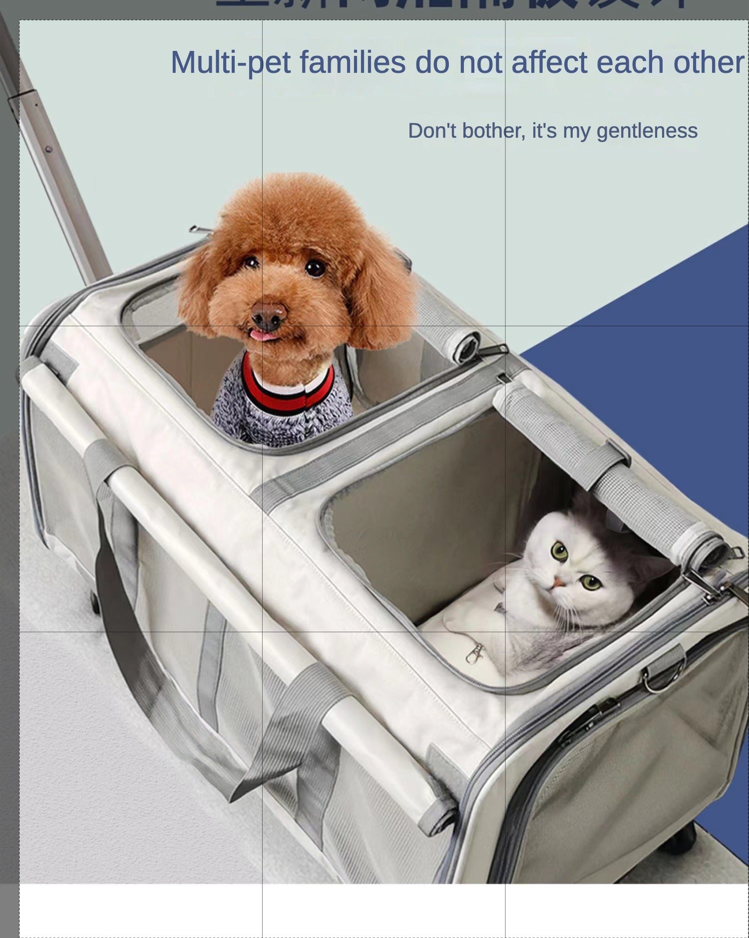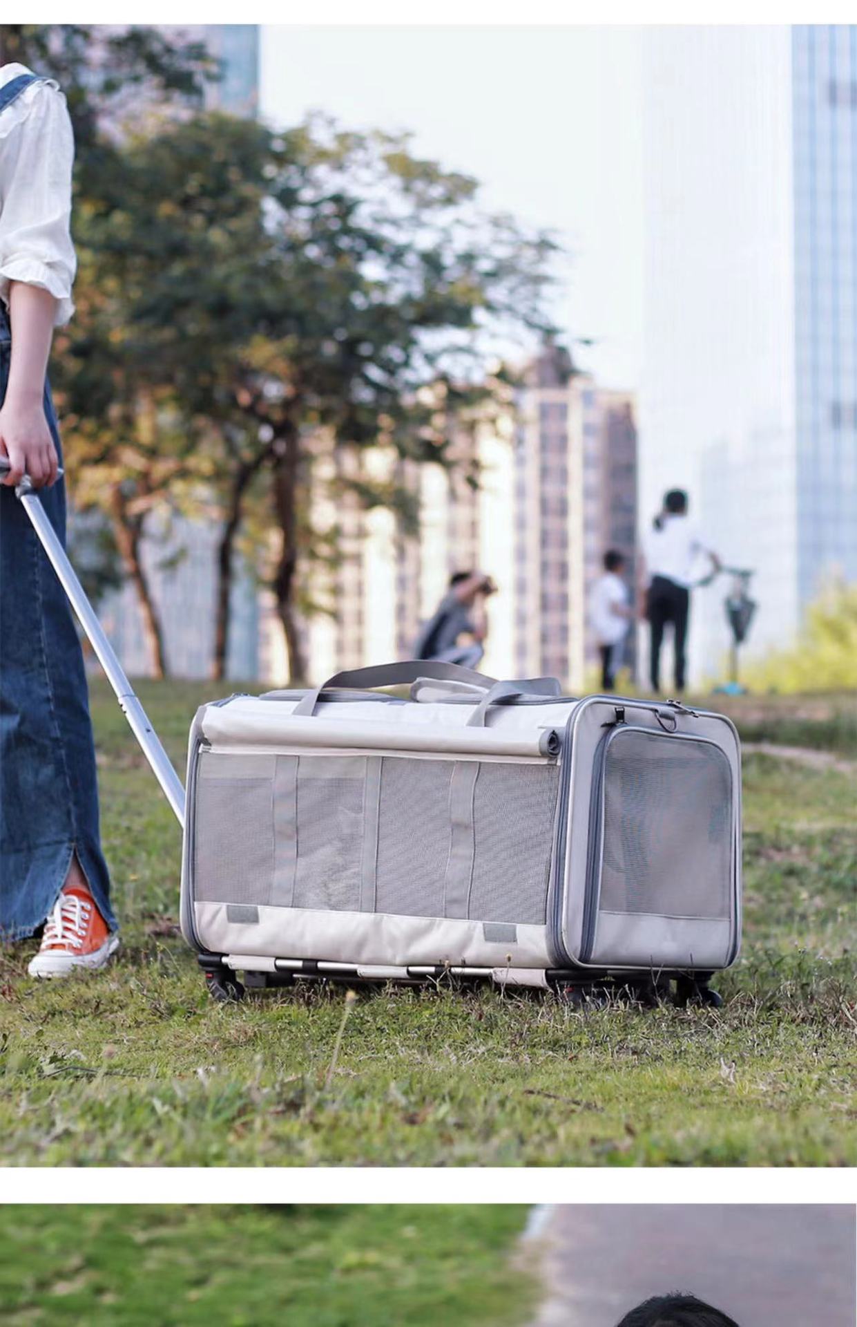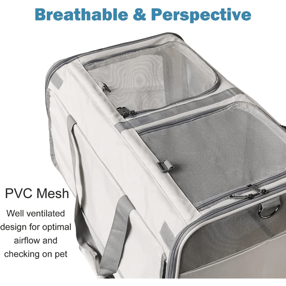 Double Compartment Detachable Travel Carrier for 2 Cats & Puppies - Spacious Pet Trolley with Ventilated Mesh & Removable Lining, Durable Wheels & Ergonomic Handle for Airplane Travel, Vet Visits, Road Trips