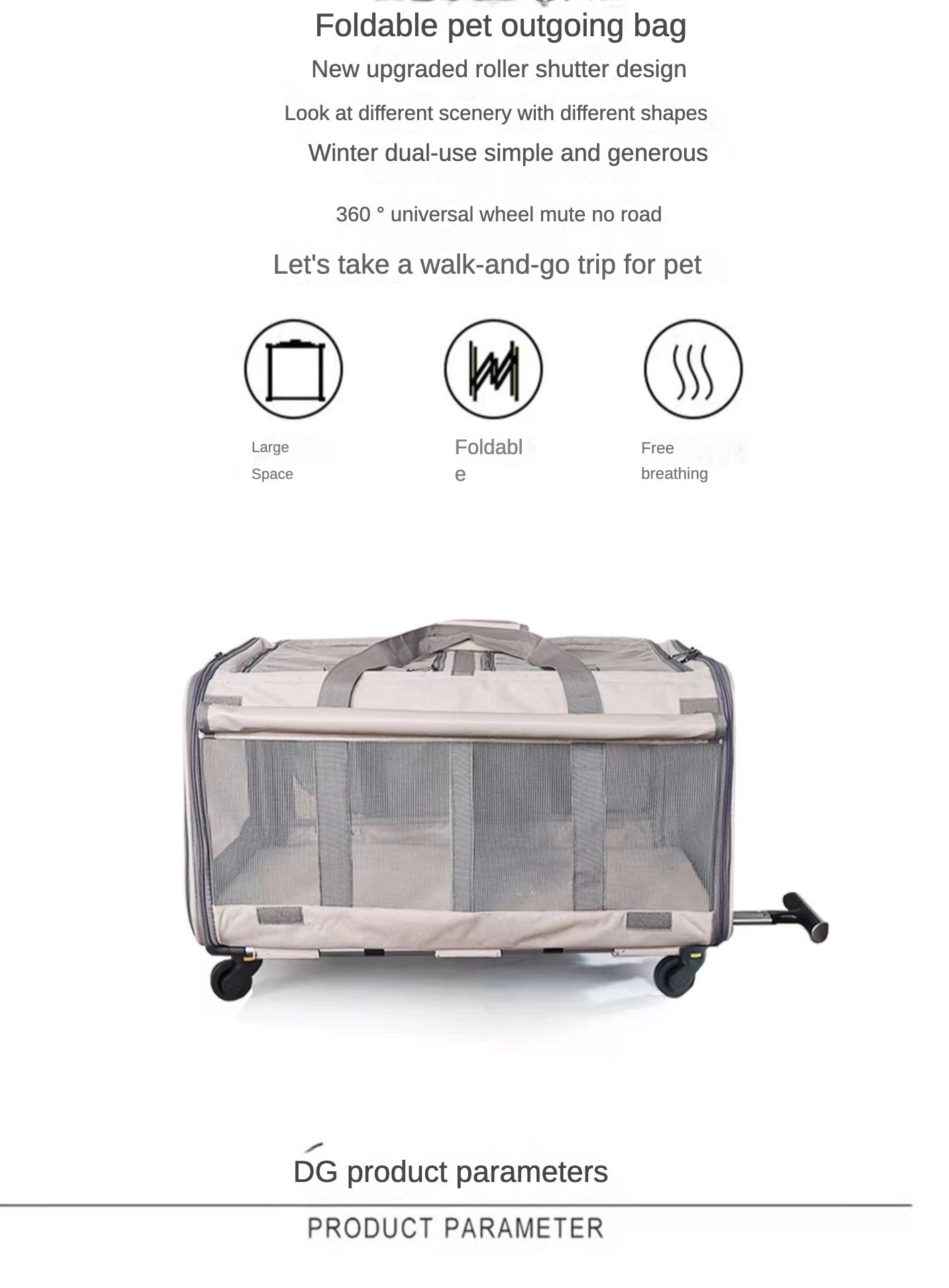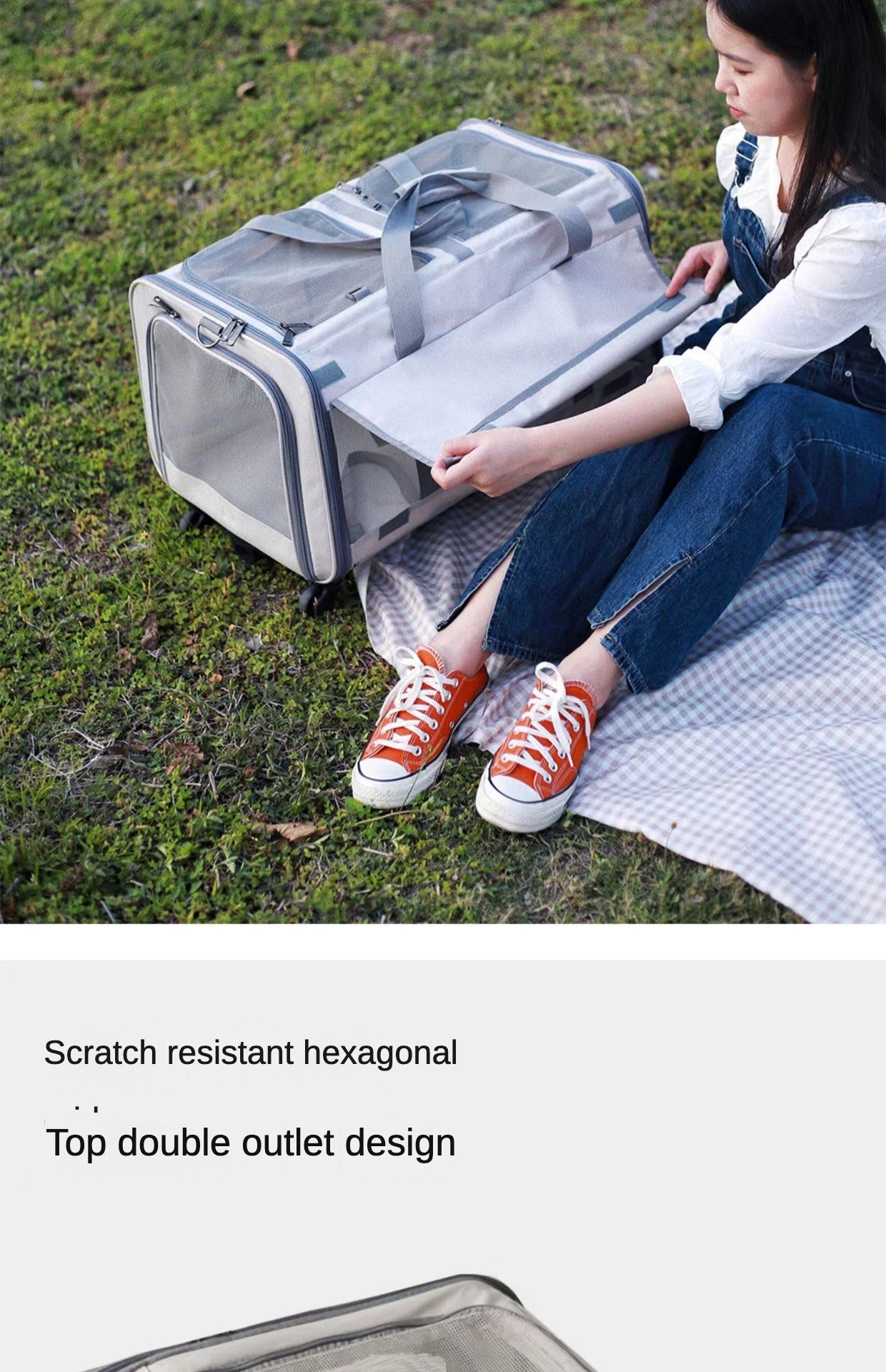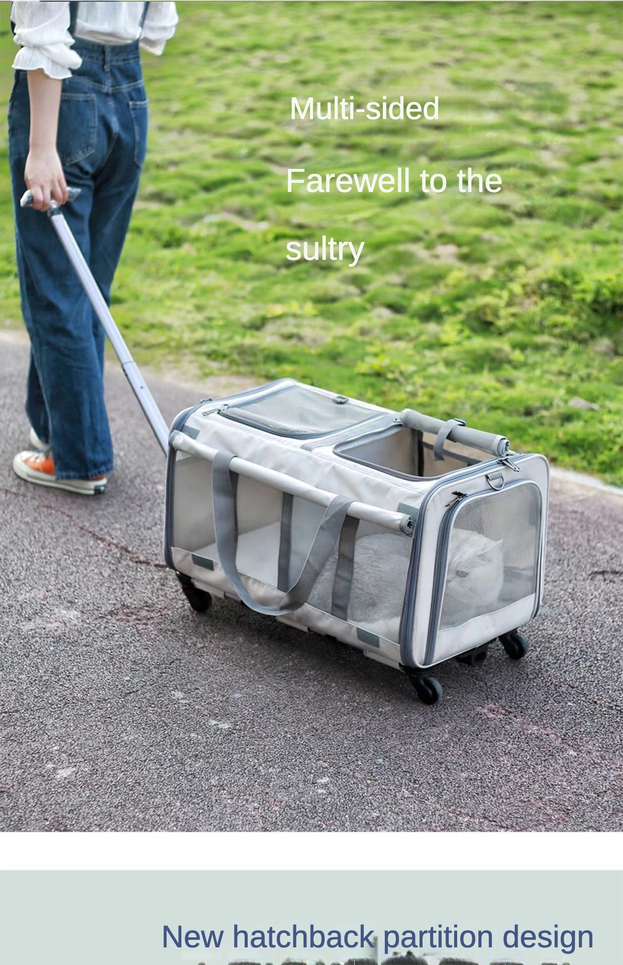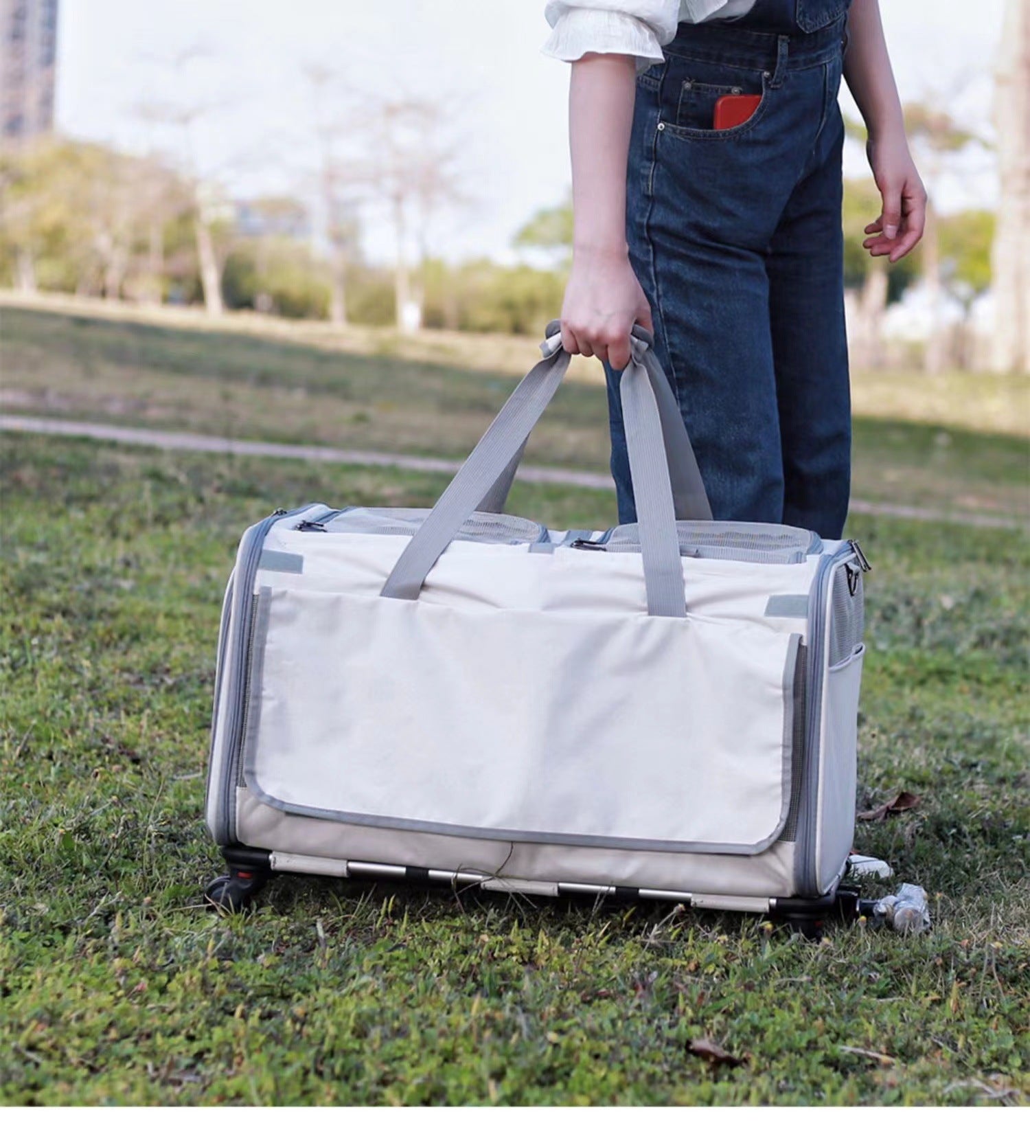 Double Compartment Detachable Travel Carrier for 2 Cats & Puppies - Spacious Pet Trolley with Ventilated Mesh & Removable Lining, Durable Wheels & Ergonomic Handle for Airplane Travel, Vet Visits, Road Trips