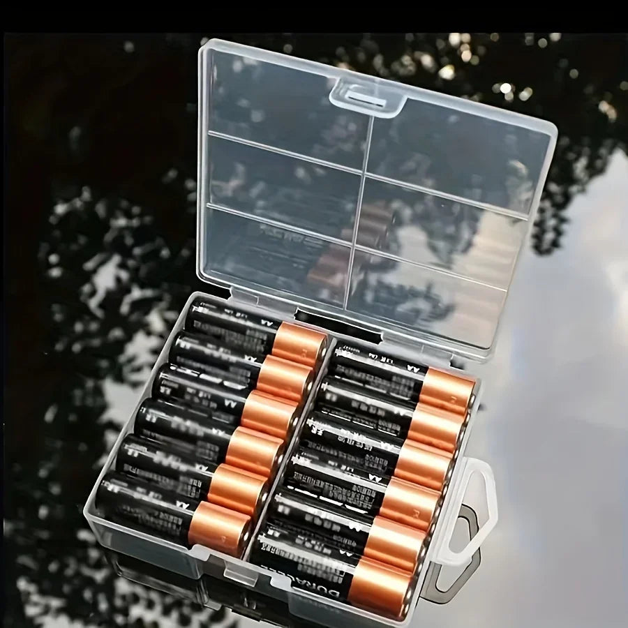 Durable Clear Battery Organizer Box - Holds 24 AA & AAA Batteries Plastic Storage Solution for Home Garage and Workshop No Power