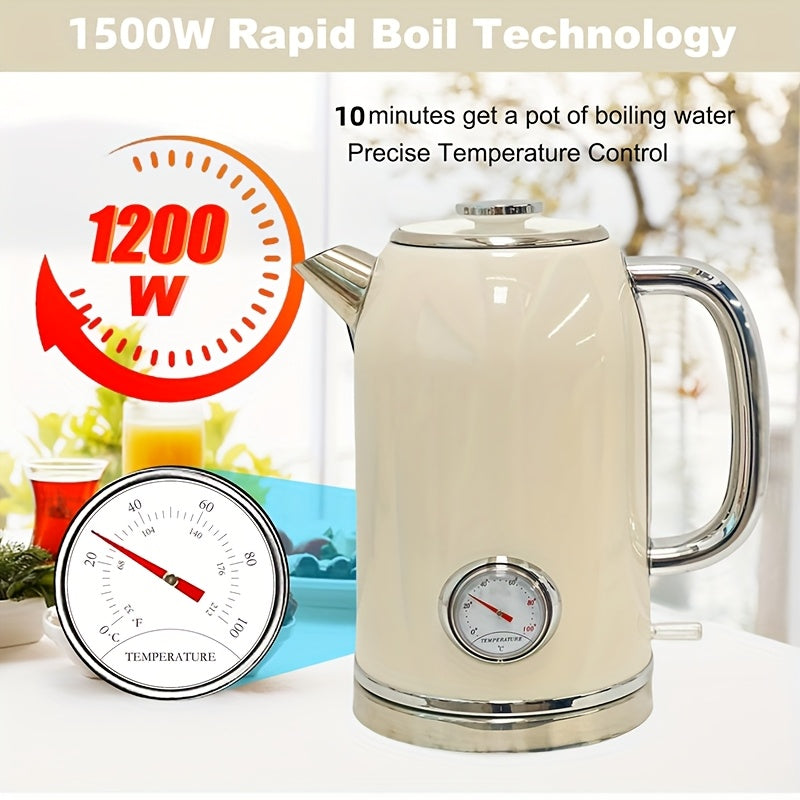 Electric Kettle -67.63oz Hot Tea Kettle with Thermometer, 1500W Fast Heating Stainless Steel Teapot,