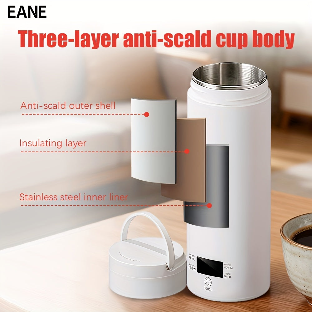 Electric Kettle Compact Stainless Steel Travel Water Bottle with 4 Temperature Settings, Quick Noodle Cooking Feature,