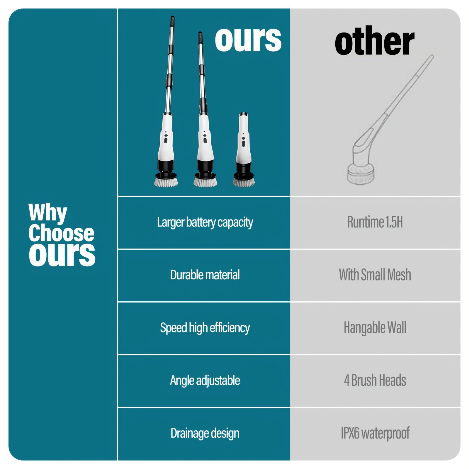 Electric Rotating Cleaning Brush with Display Screen, Featuring 3 Adjustable Speeds,