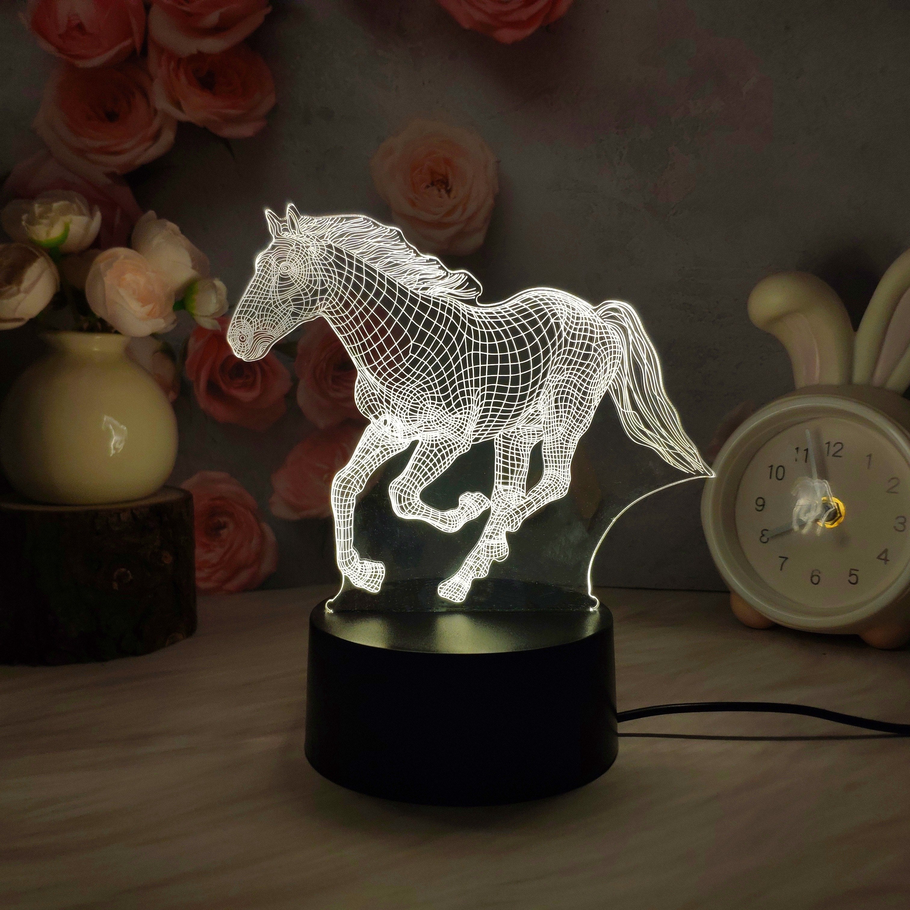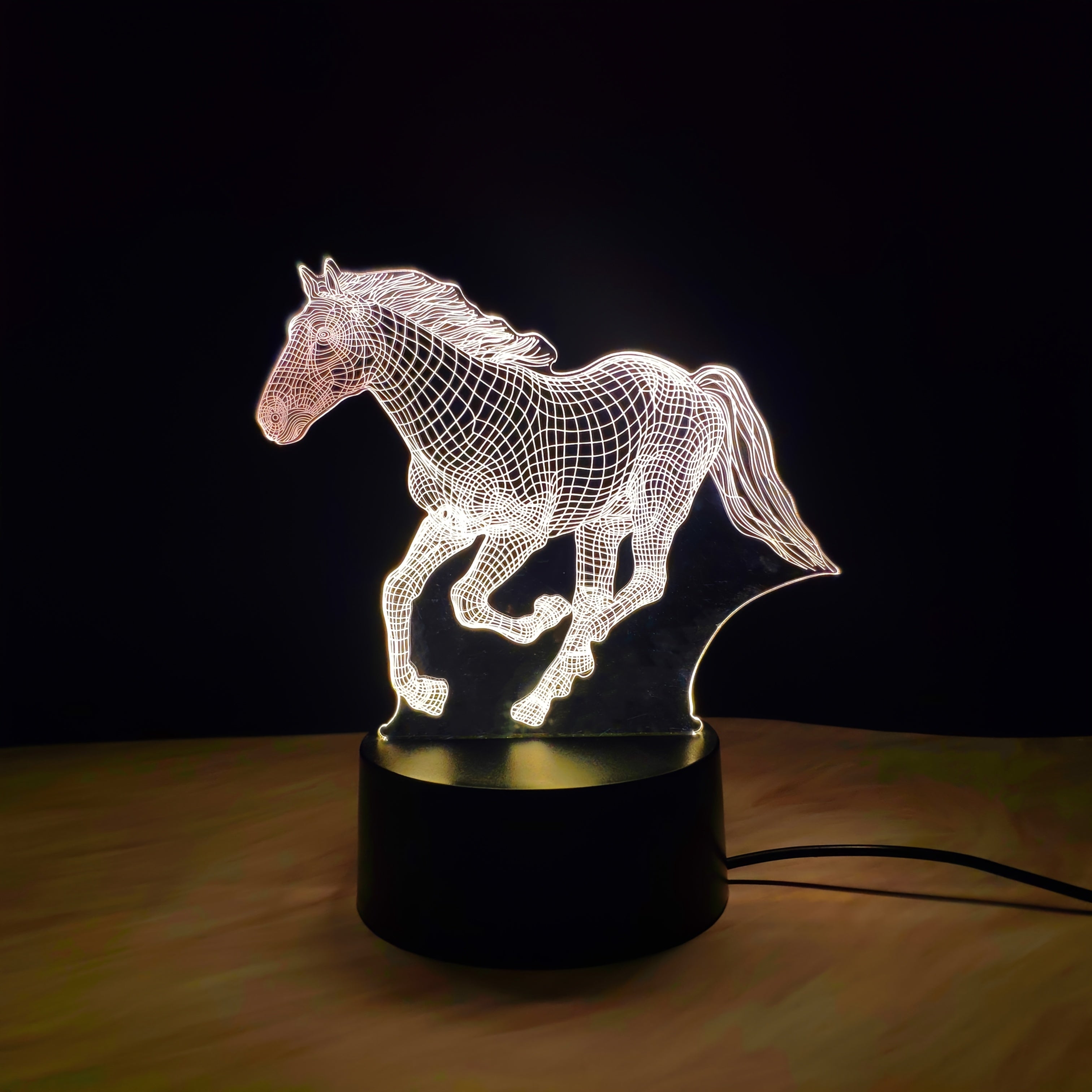 Elegant 3D Horse Lamp with USB Port - Realistic Running Horse Design, Acrylic & ABS Material