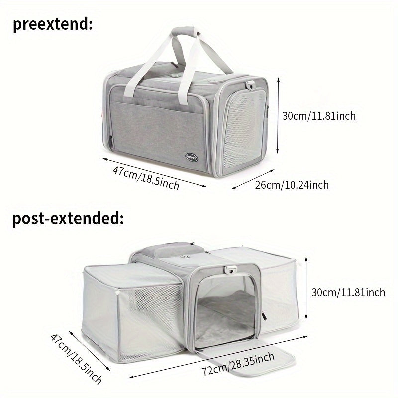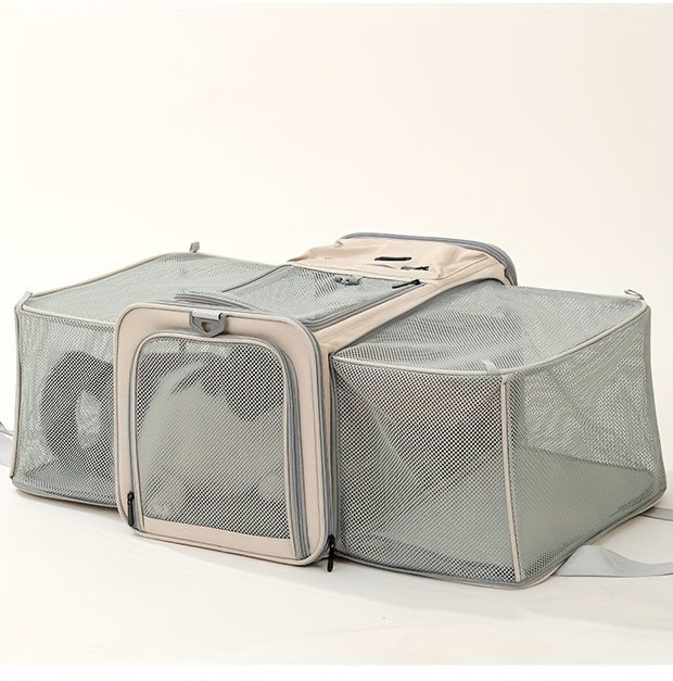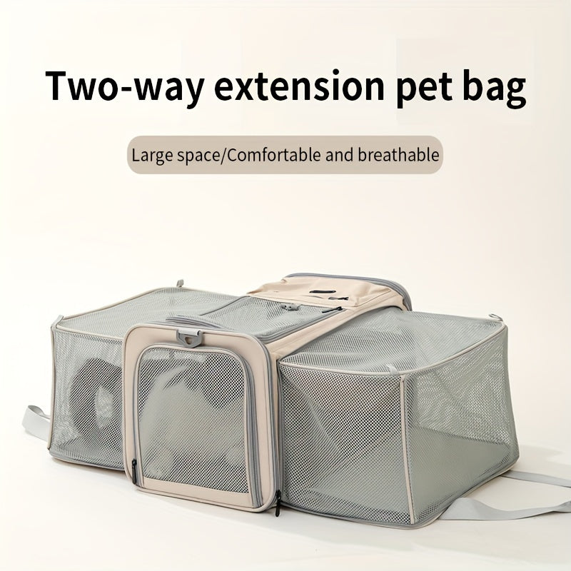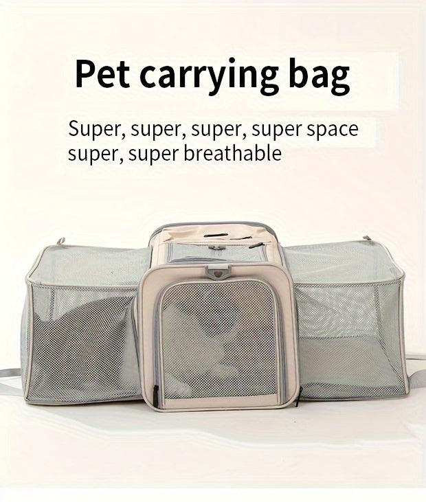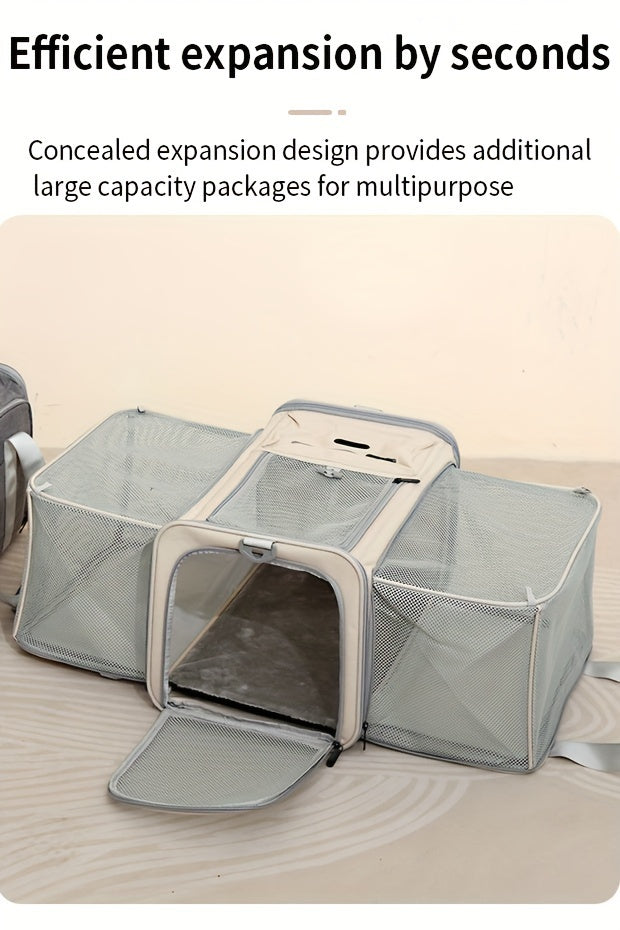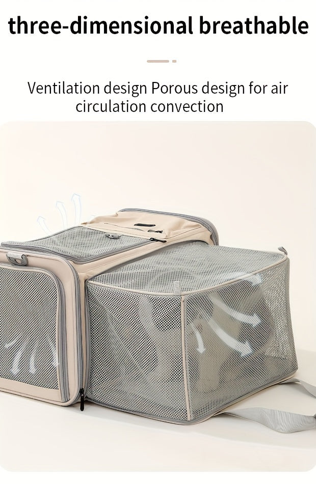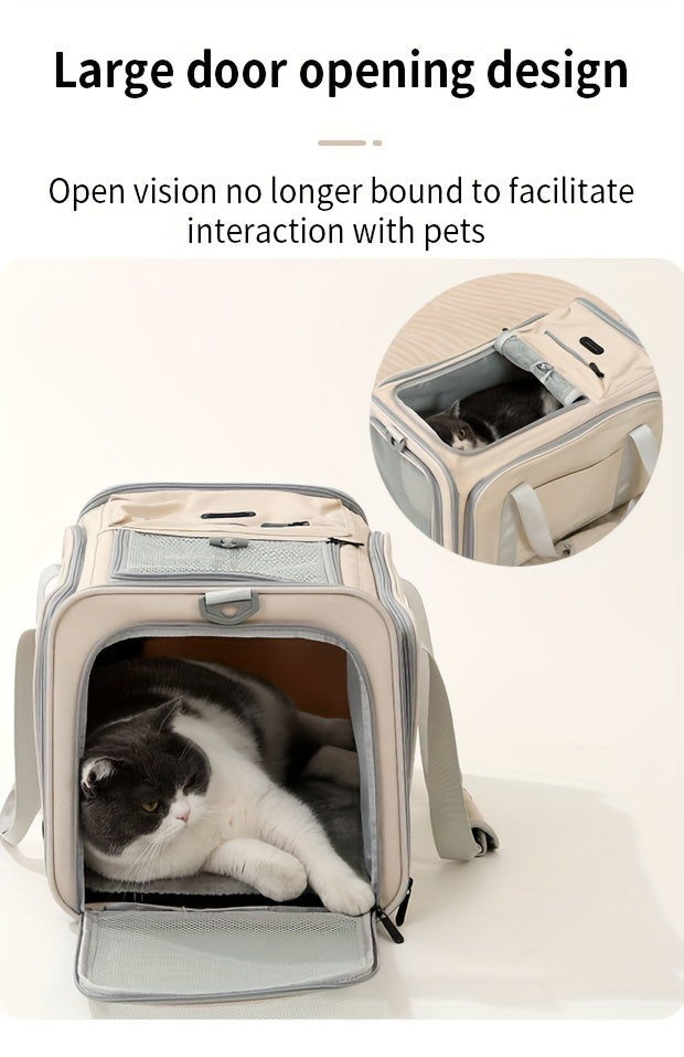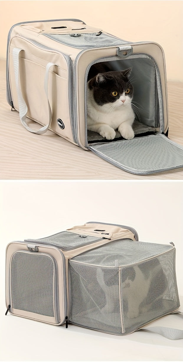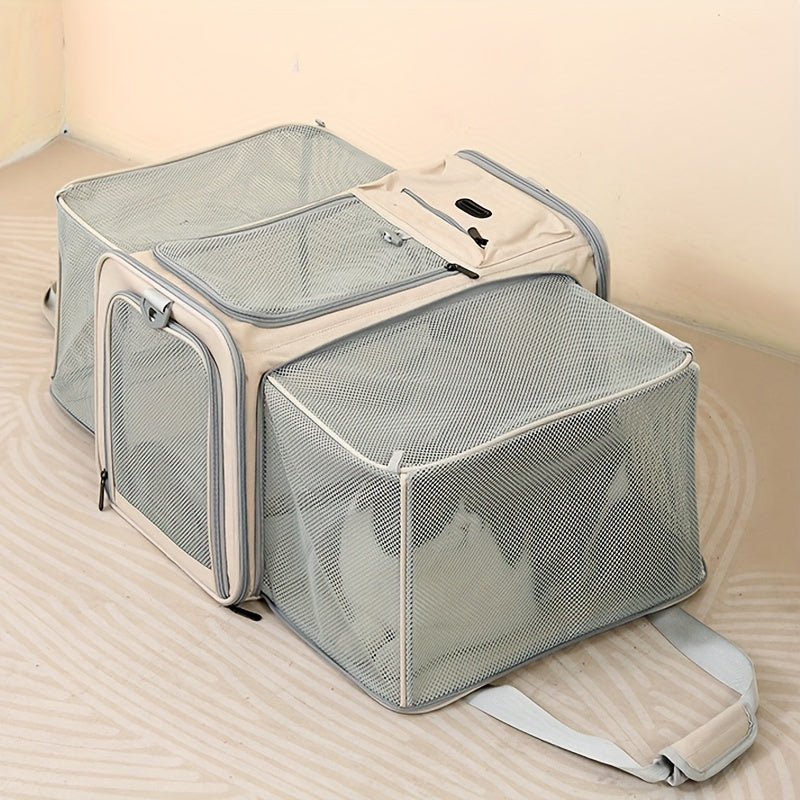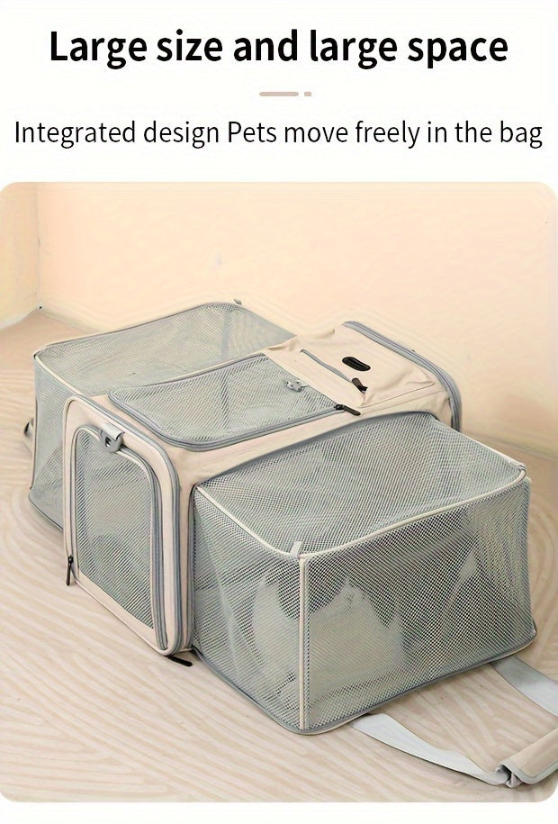 Expandable Large-Capacity Cat Carrier - Portable Linen Pet Travel Bag with Zipper Closure for Two Cats, Ideal for Outdoor Use