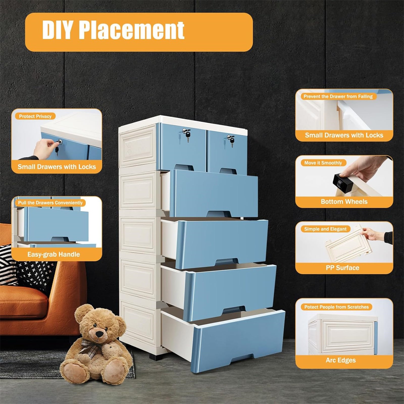 Extra Wide 50-Inch Heavy-Duty Plastic Storage Cabinet with Drawers - Heavy-Duty Construction