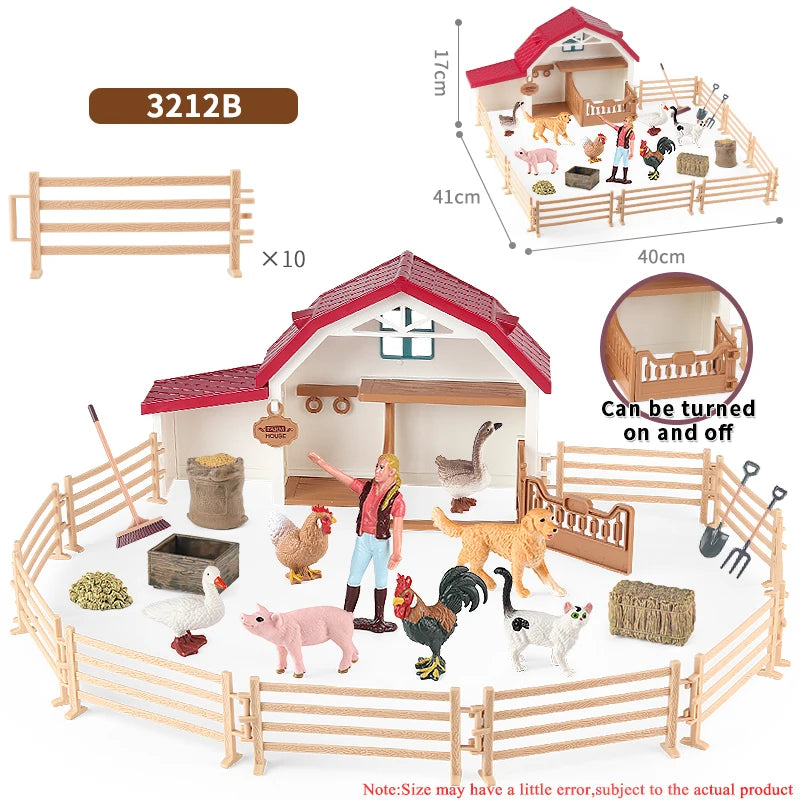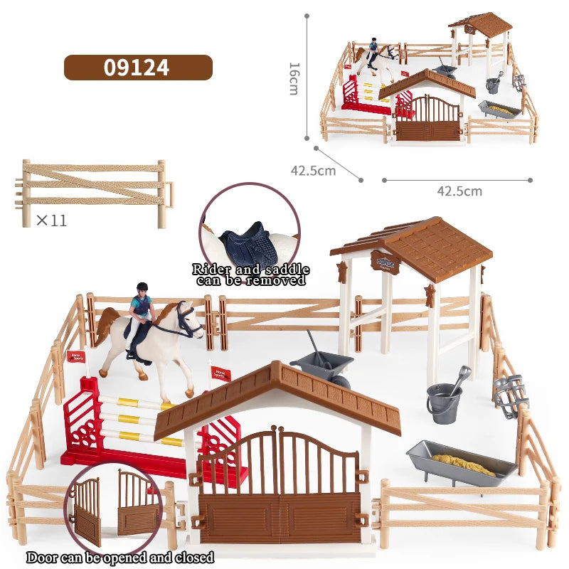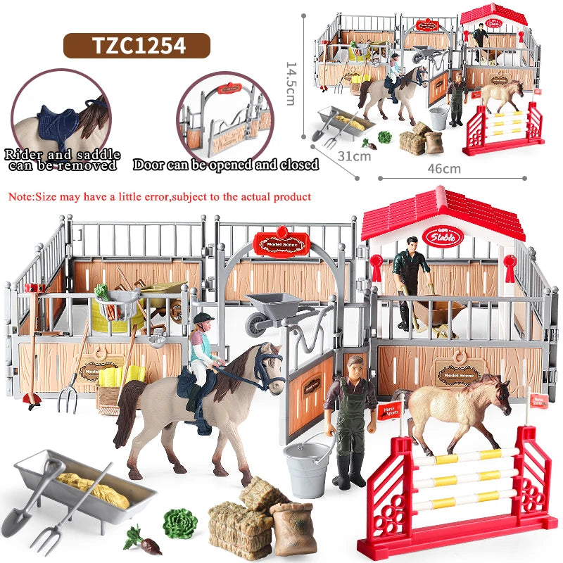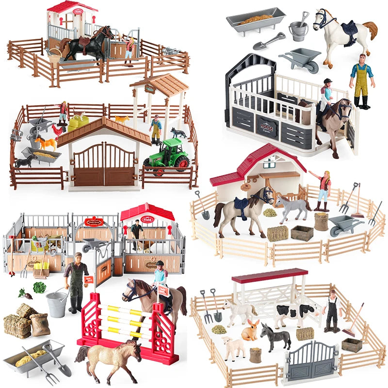 Farm Stable House Horseman Farmer Poultry Horse Animals Figurine Cute Kids Toy Gift