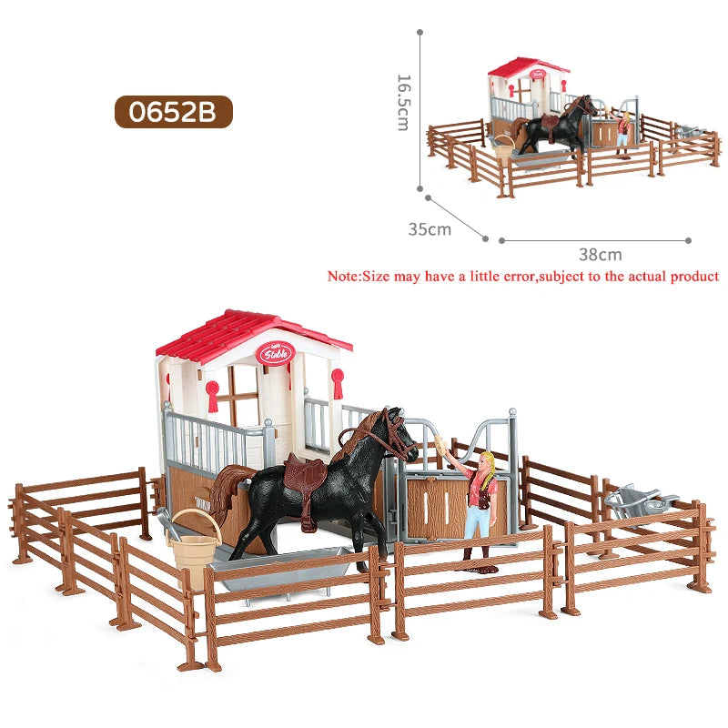 Farm Stable House Model Action Figures Emulational Horseman Horse Animals e Cute Educational Kids Toy Gift