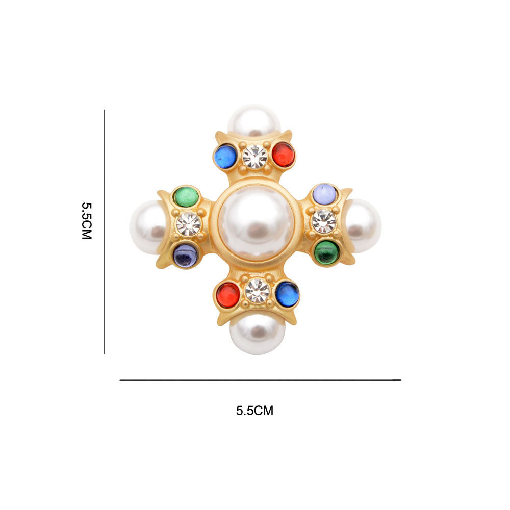 Fashion Colored Glass Pearl Cross Brooch