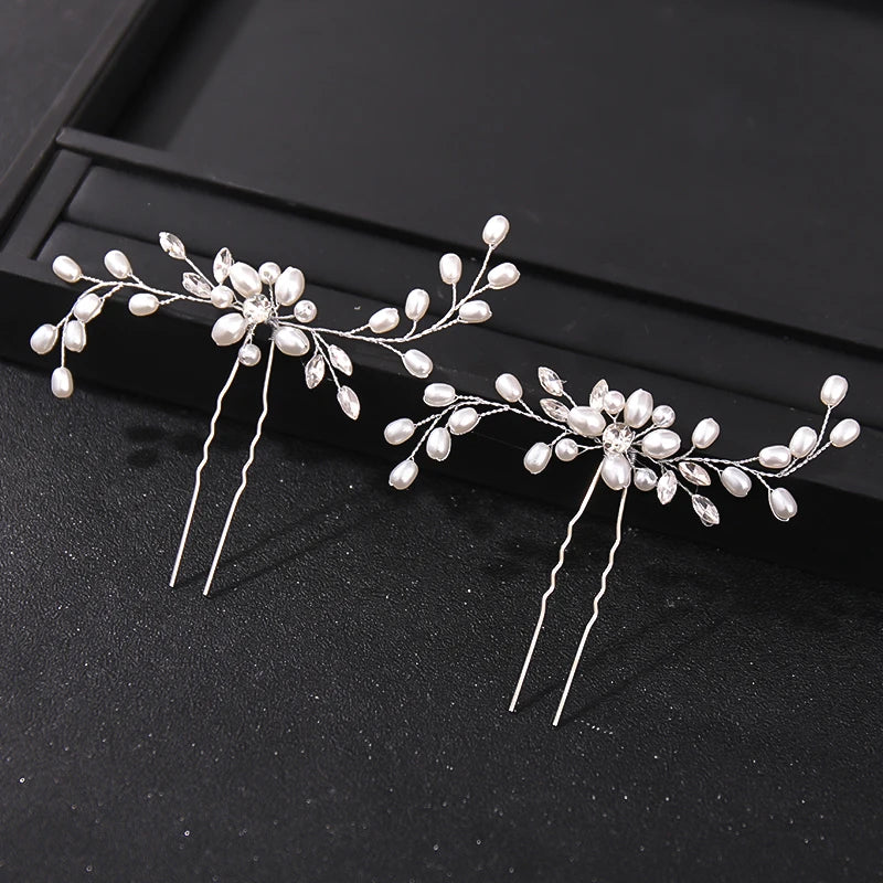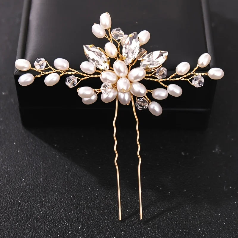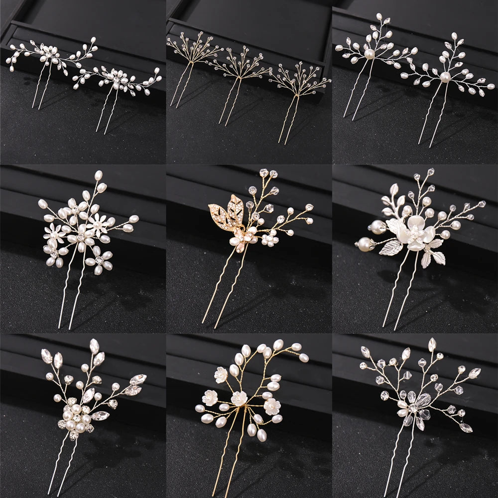 Fashion Crystal Pearl Rhinestone Hairpins Stick Hair Clip For Women Bridal Hair Accessories Party Wedding Hair Clips Jewelry