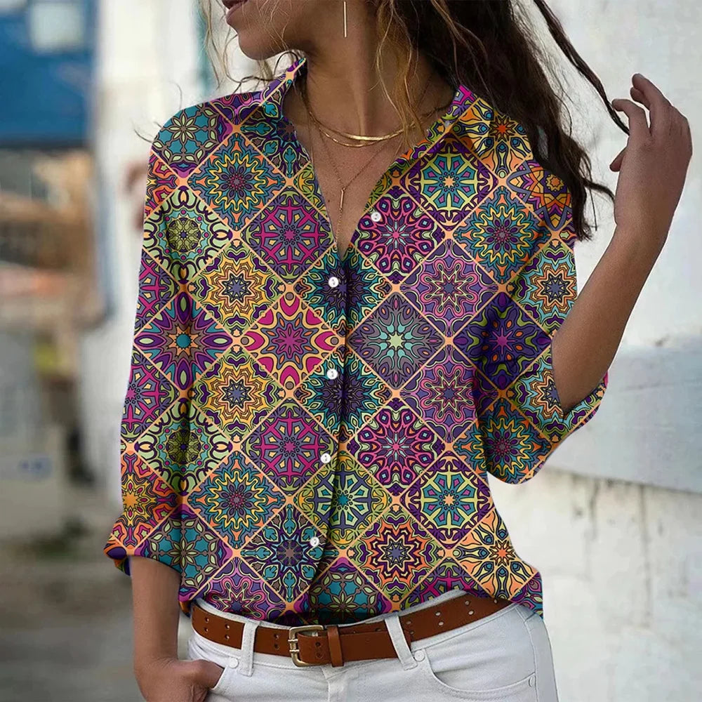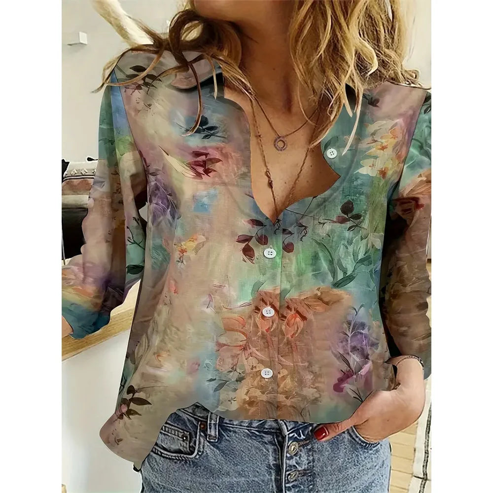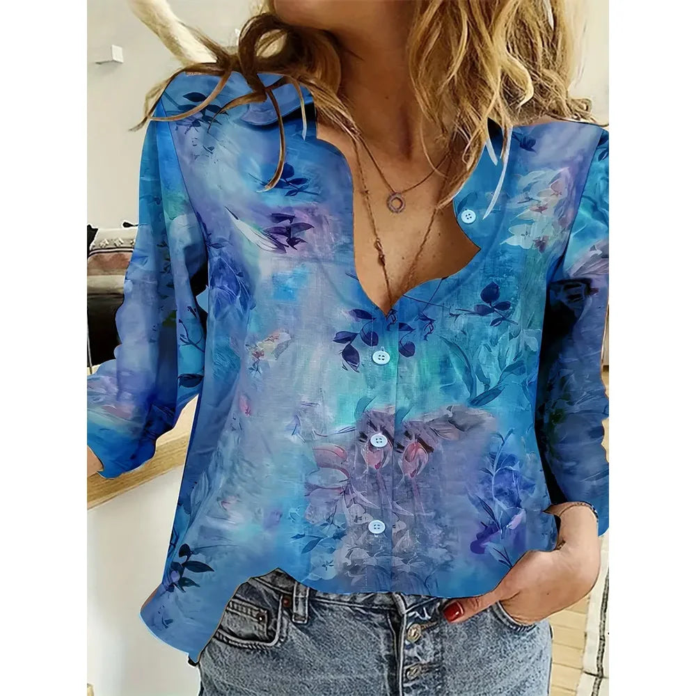 Fashion Long Sleeve Shirt Summer Breathable Single-Breasted Lapel Top 3d Floral Printed Button Shirts Women's Clothing Autumn