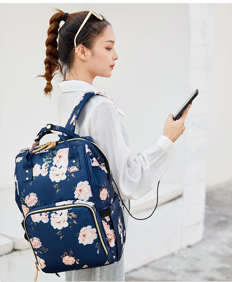 Fashion Printed Mother Bag USB Rechargeable Mother And Baby Bag Diaper Backpack