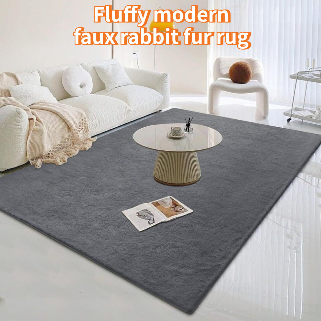 Fluffy Modern Faux Rabbit Fur Rug | Washable, Comfortable and Soft, Available in Multiple Sizes