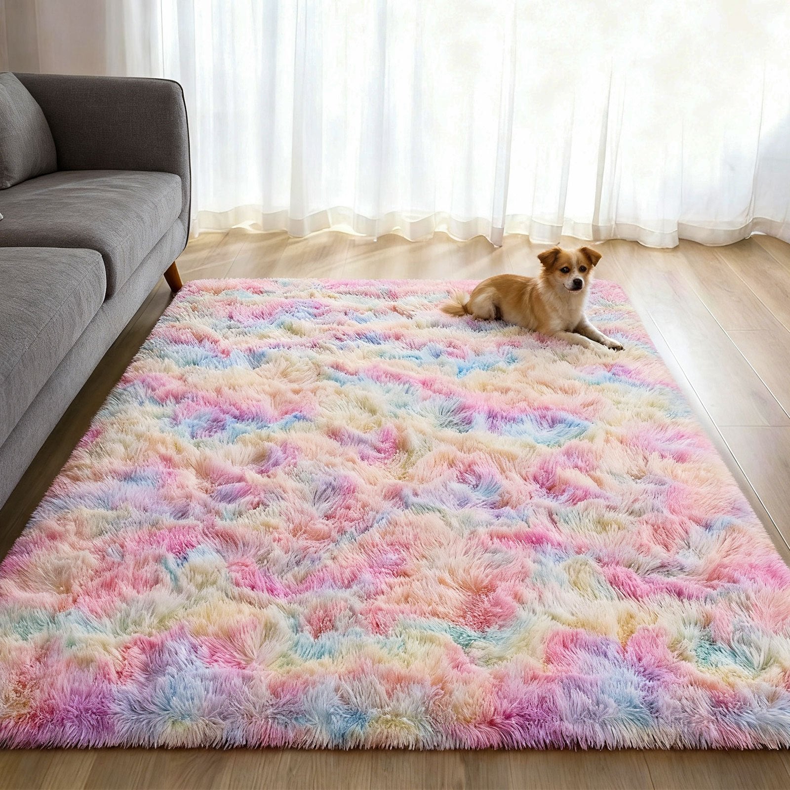 Fluffy Tie-Dye Carpet - Soft Pastel Pink, Yellow, Green, Purple, Orange, Red, Brown,Rugs Living Room