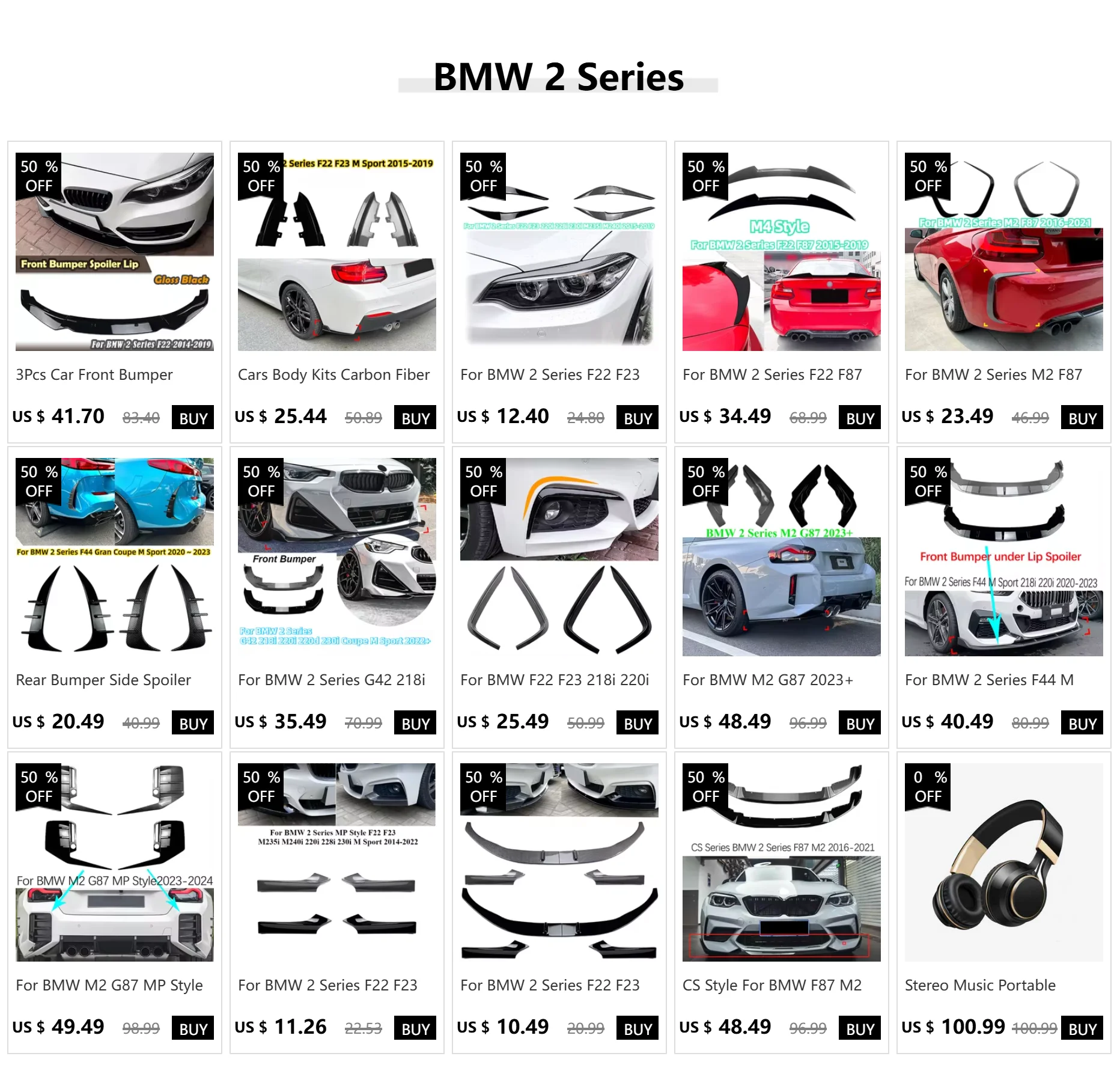 For BMW 2 Series F22 F23 M235i M240i 220i 228i 230i M Sport 2014-2022 MP Style Front Bumper Side Lip Cover Air Vent Spoiler Trim