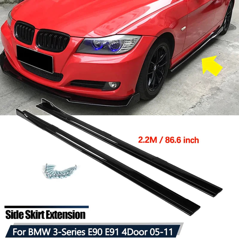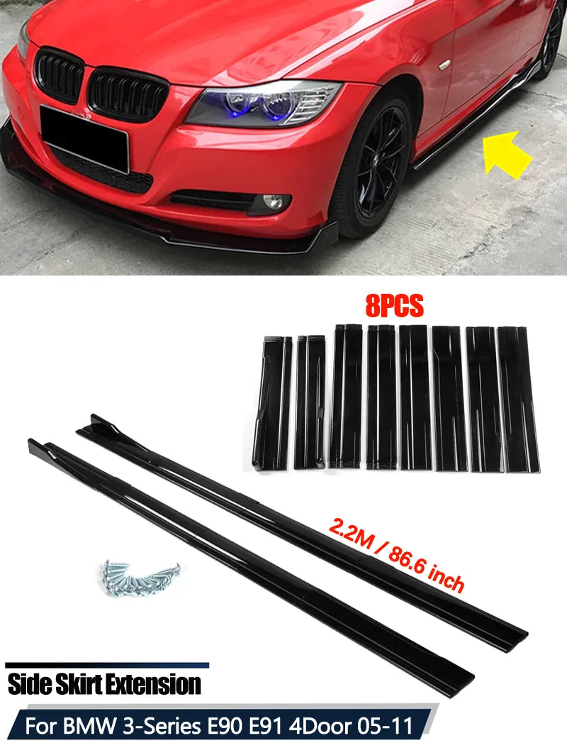 For BMW Accessories 3 Series E90 E91 320i 330i 2005-2011 Car Side Skirts 2.2M 86.6inch Extension Rocker Panels Lip Bumper ABS 8p