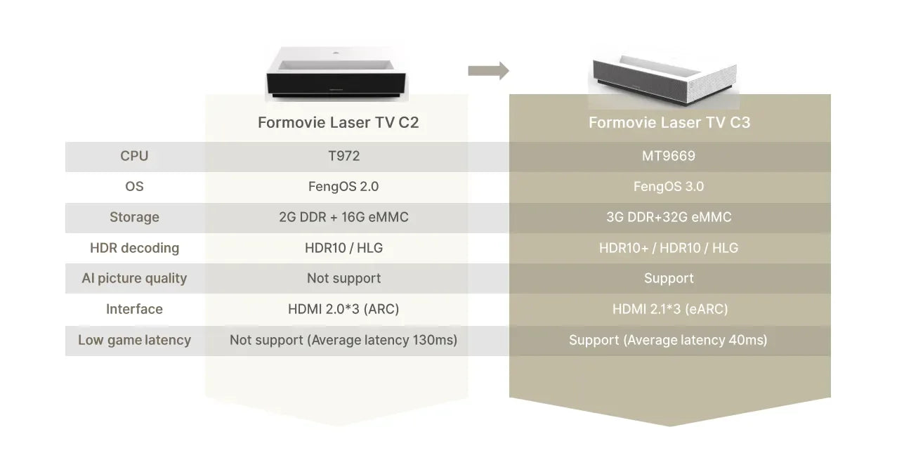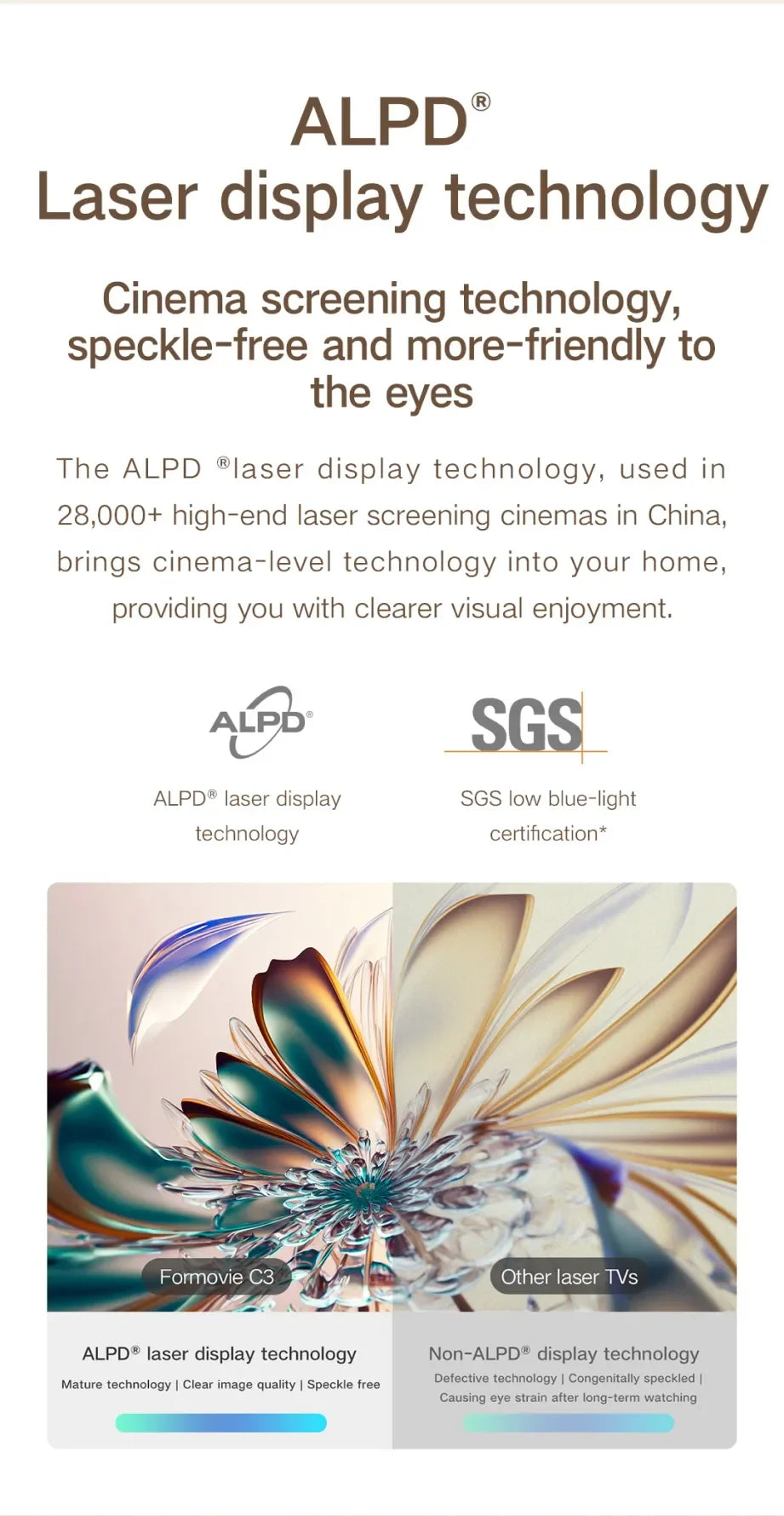 Formovie C3 4K Laser TV Projector ALPD 400 Nit Brightness Beamer Cinema 3 DLP 40ms Game UST Projetor Fengmi For Home Theater