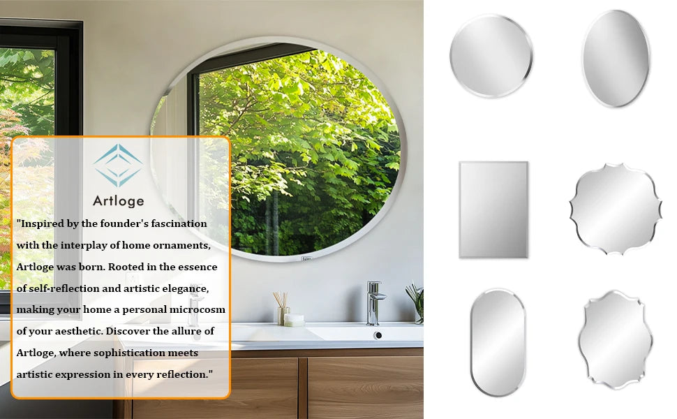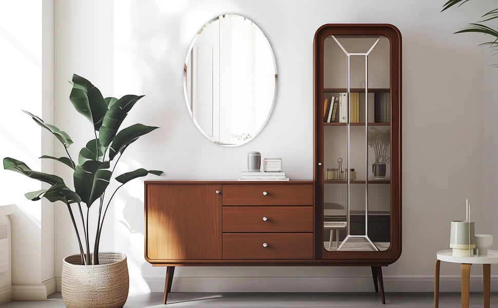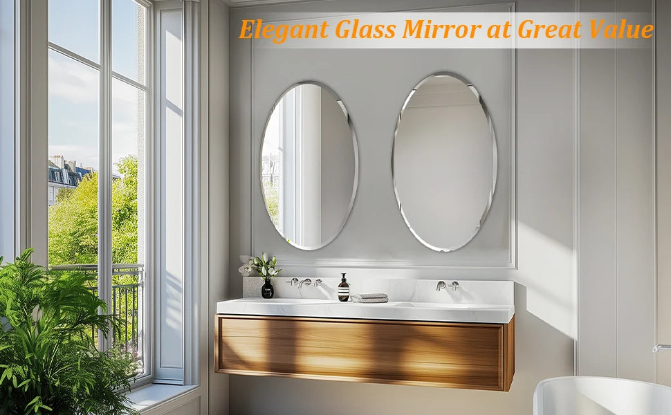 Frameless Oval Wall Mirror High Definition Elliptical Vanity Mirror with Beveled Silver Edge for Bathroom Bedroom Livingroom