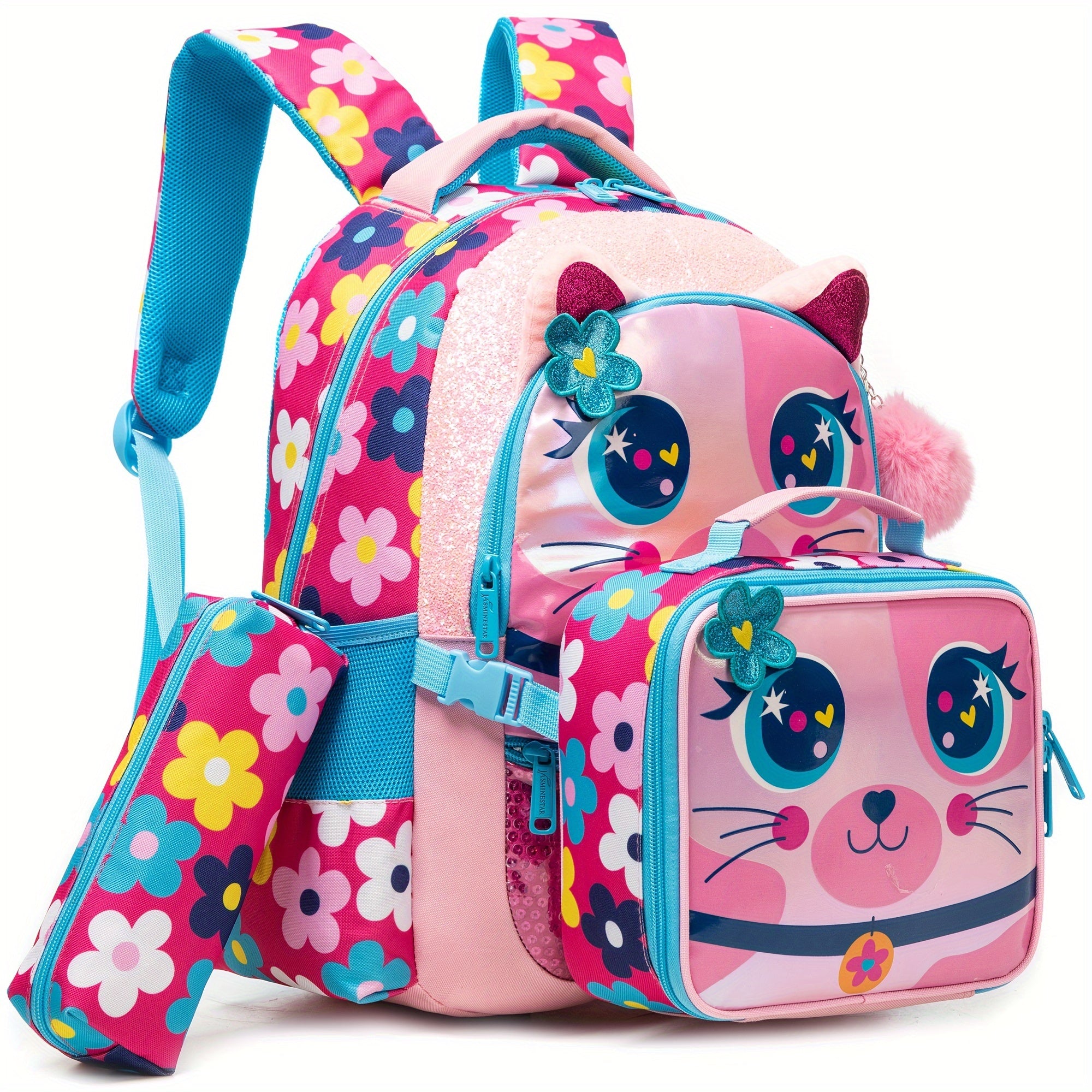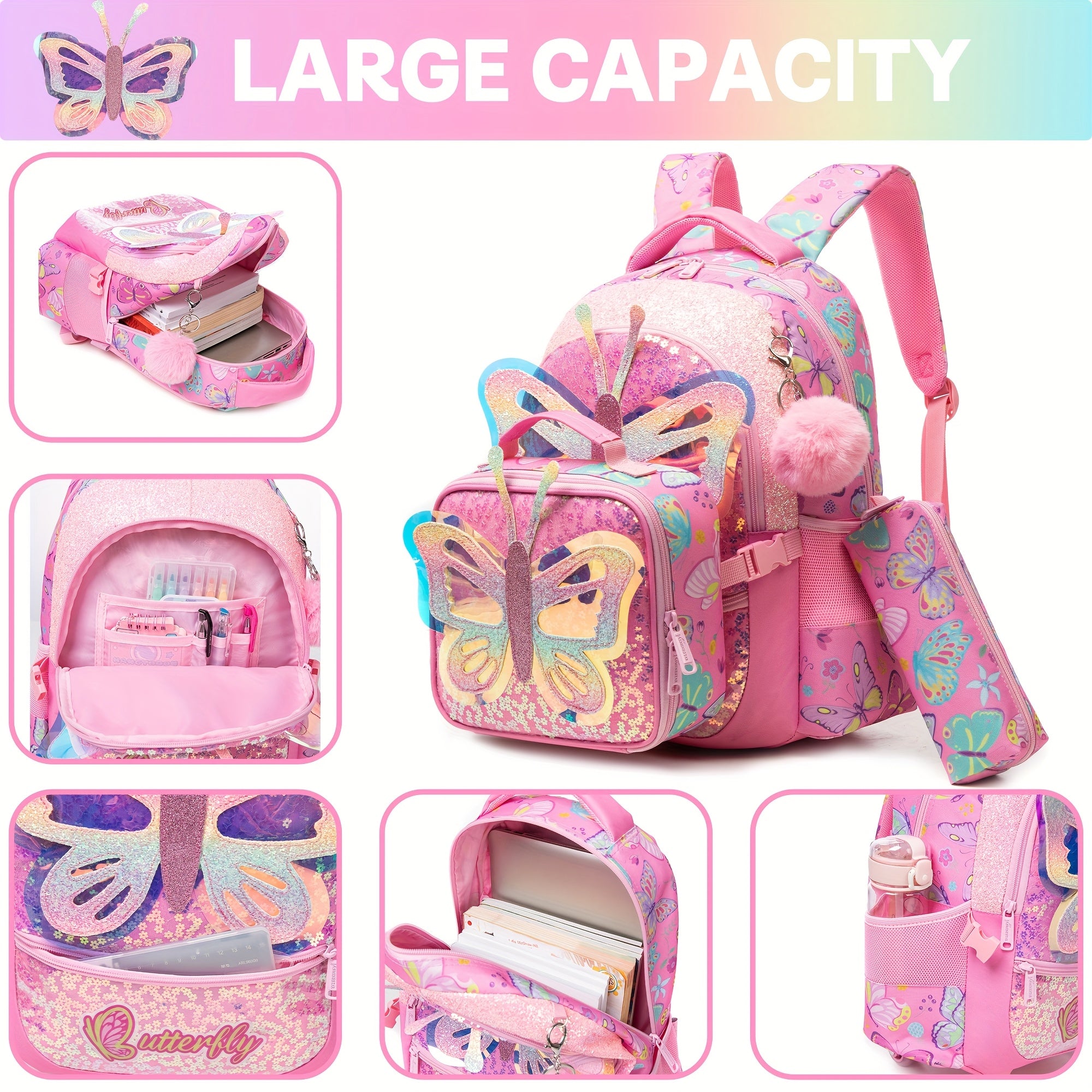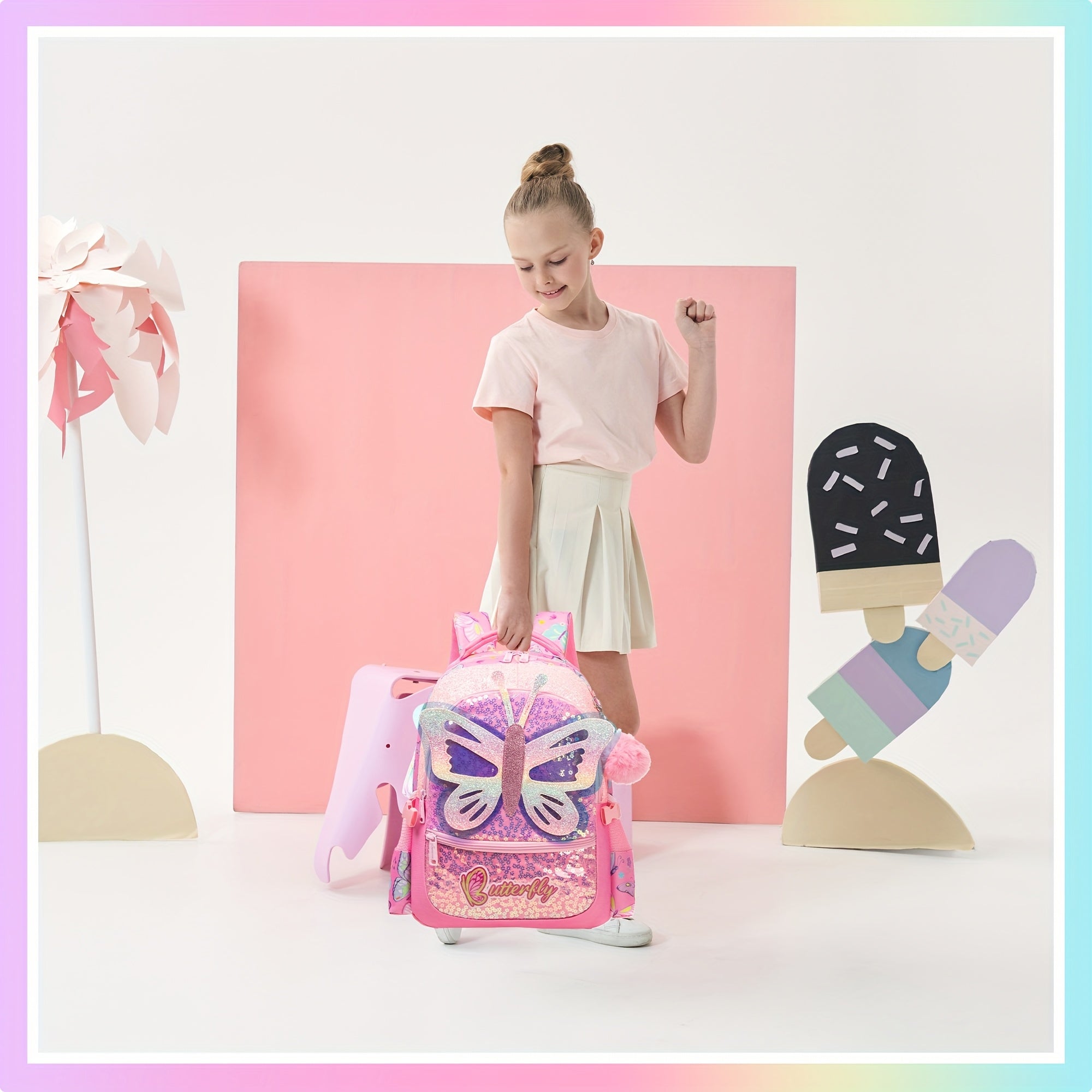 Girls Backpack for Elementary School with handbag and Pencil Case Cute Butterfly/Cat/Mermaid Backpack