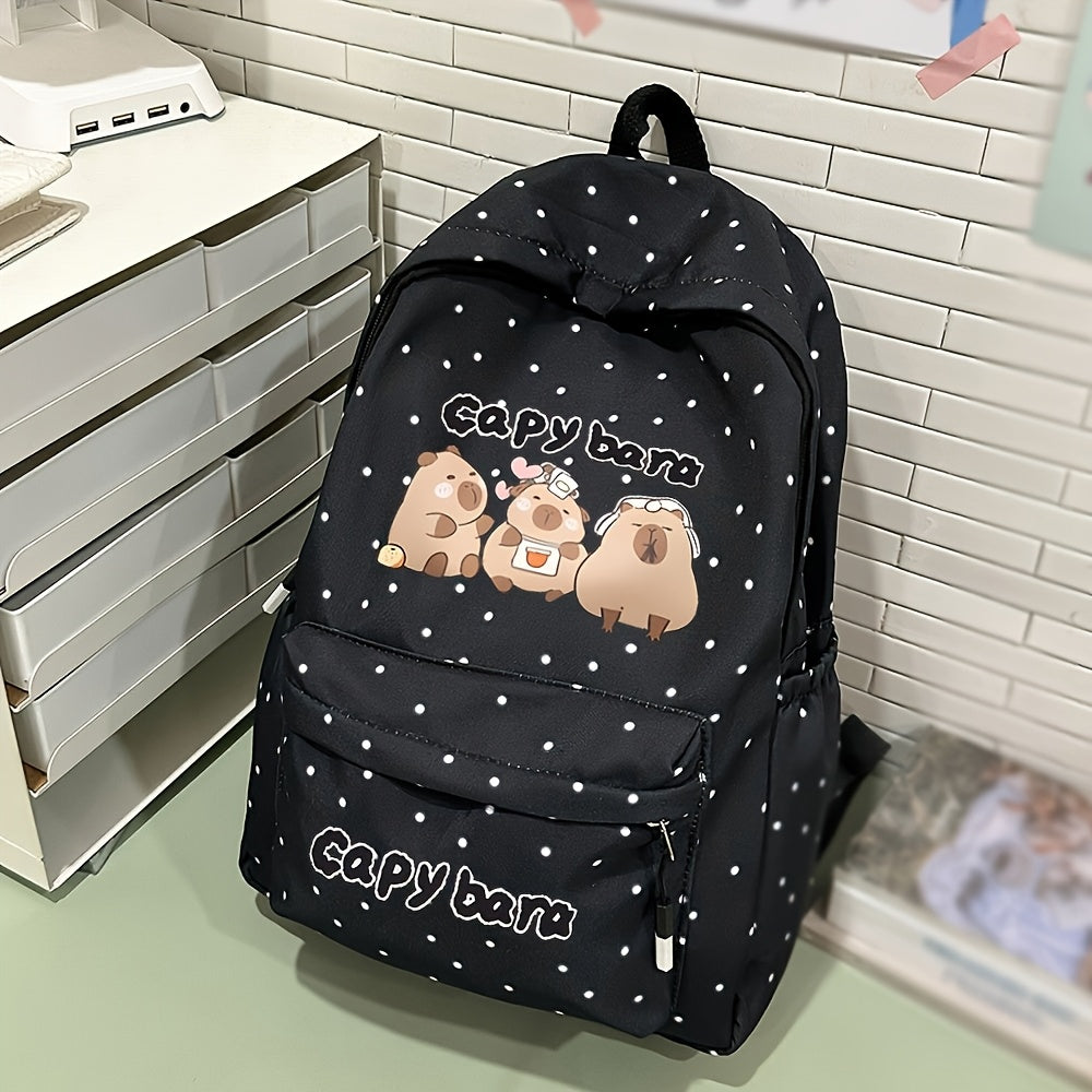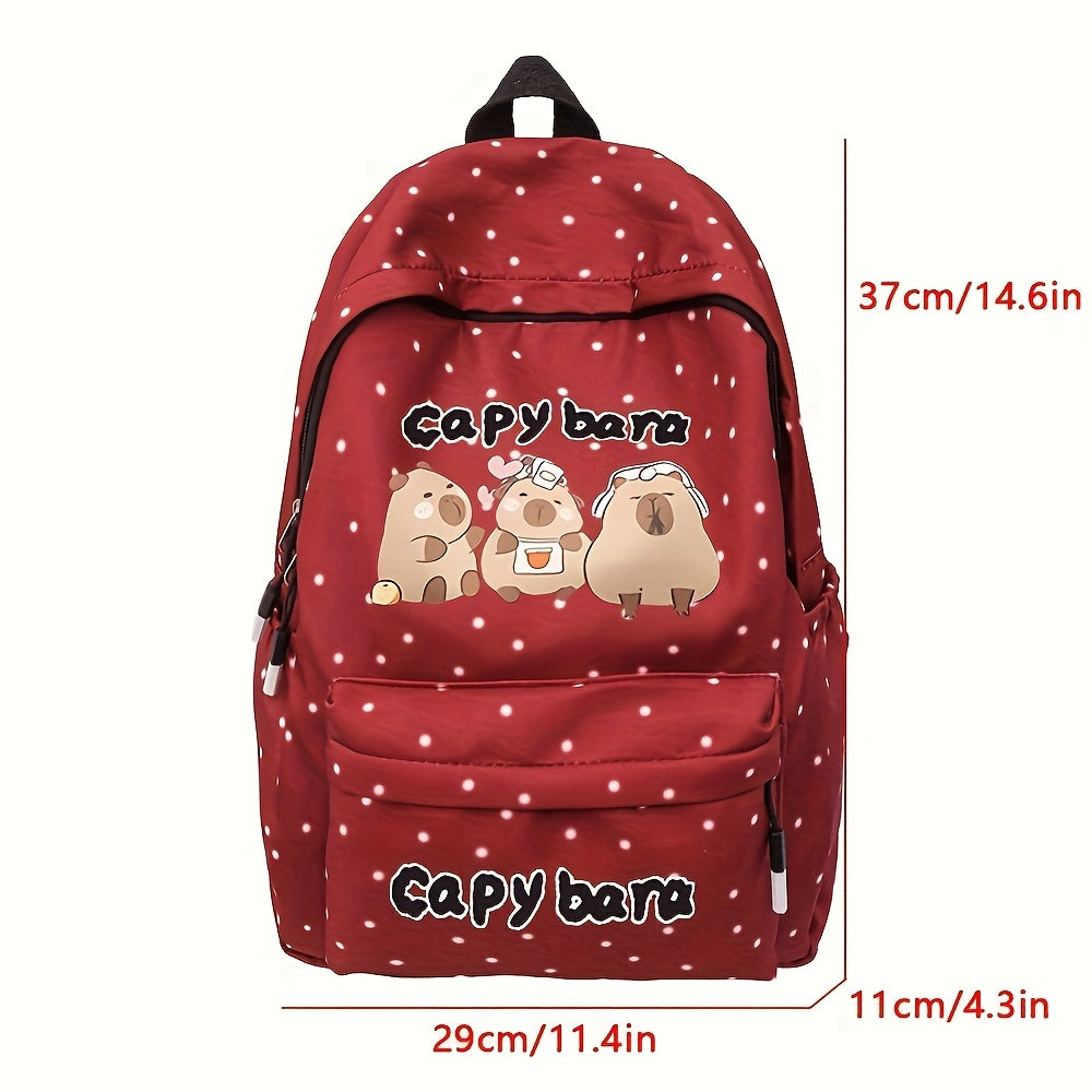 Girls' School Backpack with Capybara Design - Large Capacity Travel Bookbag, Adjustable Straps & Zipper