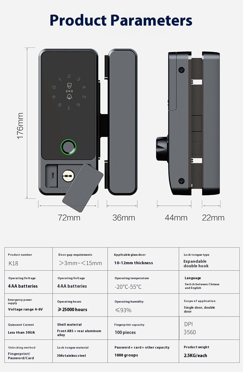 Glass Door Fingerprint Lock Punch Free Office Intelligence