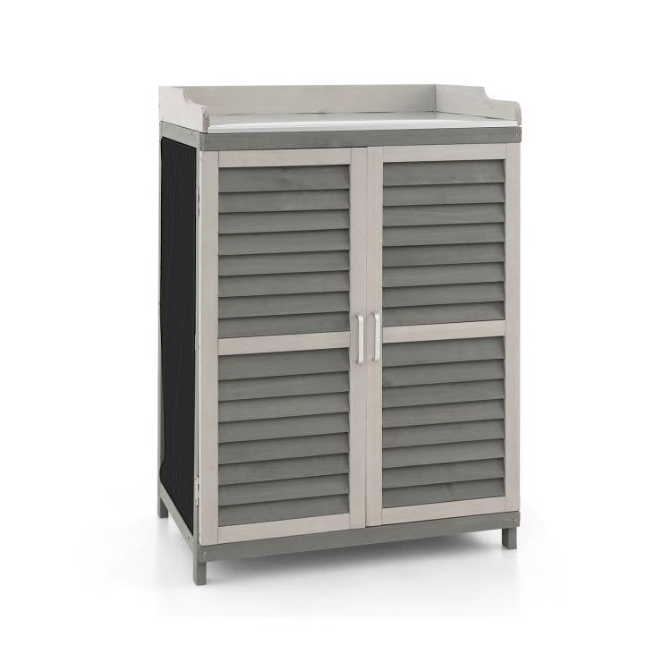- Grey Solid Wood Patio Storage Cabinet Garden Potting Bench Table with Metal Top