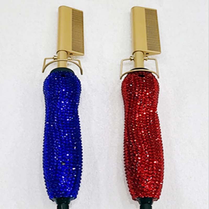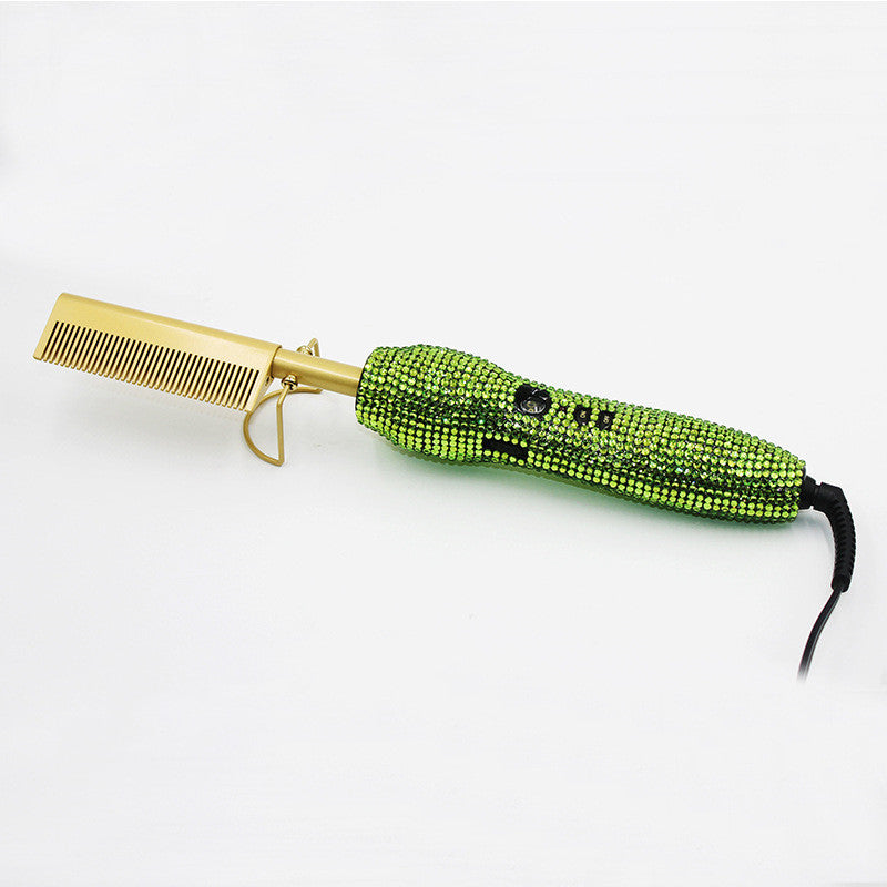 Hairdressing Comb Straight Curl Set With Glass Rhinestone Dual-Purpose Gold Diamond-Set Straight Hair Comb Hair Straightener